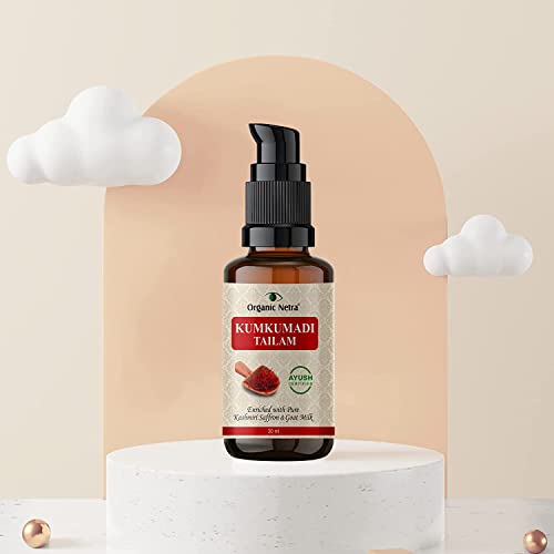 • AYURVEDIC REMEDY FOR RADIATING GLOW: Kumkumadi tailam for skin is formulated using the methods stated in the ancient Ayurvedic text of Ashtanga Hrudaya as an essential beauty element for the skin. Organic Netra Kumkumadi Thailam is an authentic preparatio
