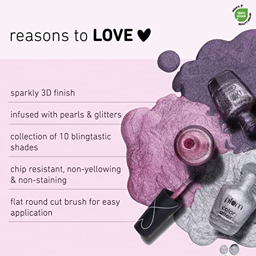 Plum Color Affair Nail Polish All That Glitters Collection | 3D Finish With Pearls & Glitters | 7-Free Formula | 100% Vegan & Cruelty Free | Minty Stars - 166