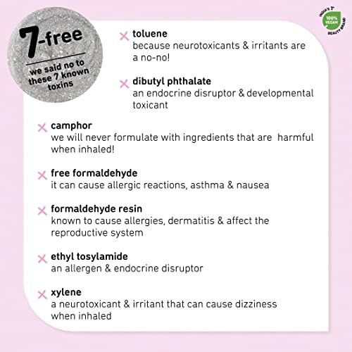 • 7 FREE FORMULA - that is extra kind to your nails and formulated without irritants endocrine disruptors & anything thats unsafe!