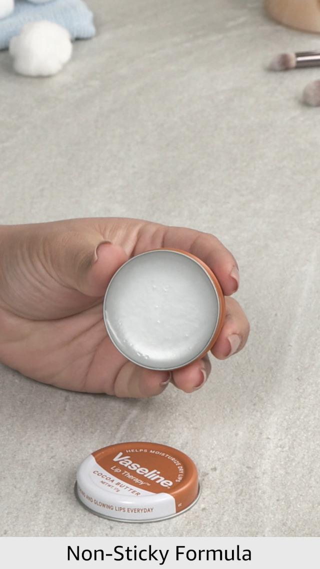 Our lips have an amazing ability to experience heightened sensations allowing us to feel the slightest of touch and sense the environment around us. However unlike body skin the skin on our lips does not naturally create its own moisture layer leaving it susceptible to dryness and chapping. Also the skin on lips are three times delicate than other body parts and thus calls for special care. The New Vaseline Lip therapy Tins with Petrolatum jelly helps moisturize dry lips and keep them soft. The new iconic tin pack design fits to palm and is easy to carry in your handbags and pockets so that you can easily moisturize your lips on the go! Vaseline Lip therapy with its specialized formulation which does not feel too greasy or sticky help to form protective layer on lips which helps to lock in moisture and keep your lips beautiful with a glossy shine. The new Vaseline Lip Therapy tins are available in multiple variants: Original care- For healthy looking and soft lips every day! Cocoa butter- For healthy looking and glowing lips every day! Aloe- For healthy looking and Naturally soft lips every day! Grab your favourite Lip tin and say no to dry and chapped lips with Vaseline Lip therapy. Direction for use: 1. Open the lid. 2. Apply the product gently on your lips with your index finger 3. Get moisturized and healthy-looking lips with a natural glossy shine on the go!