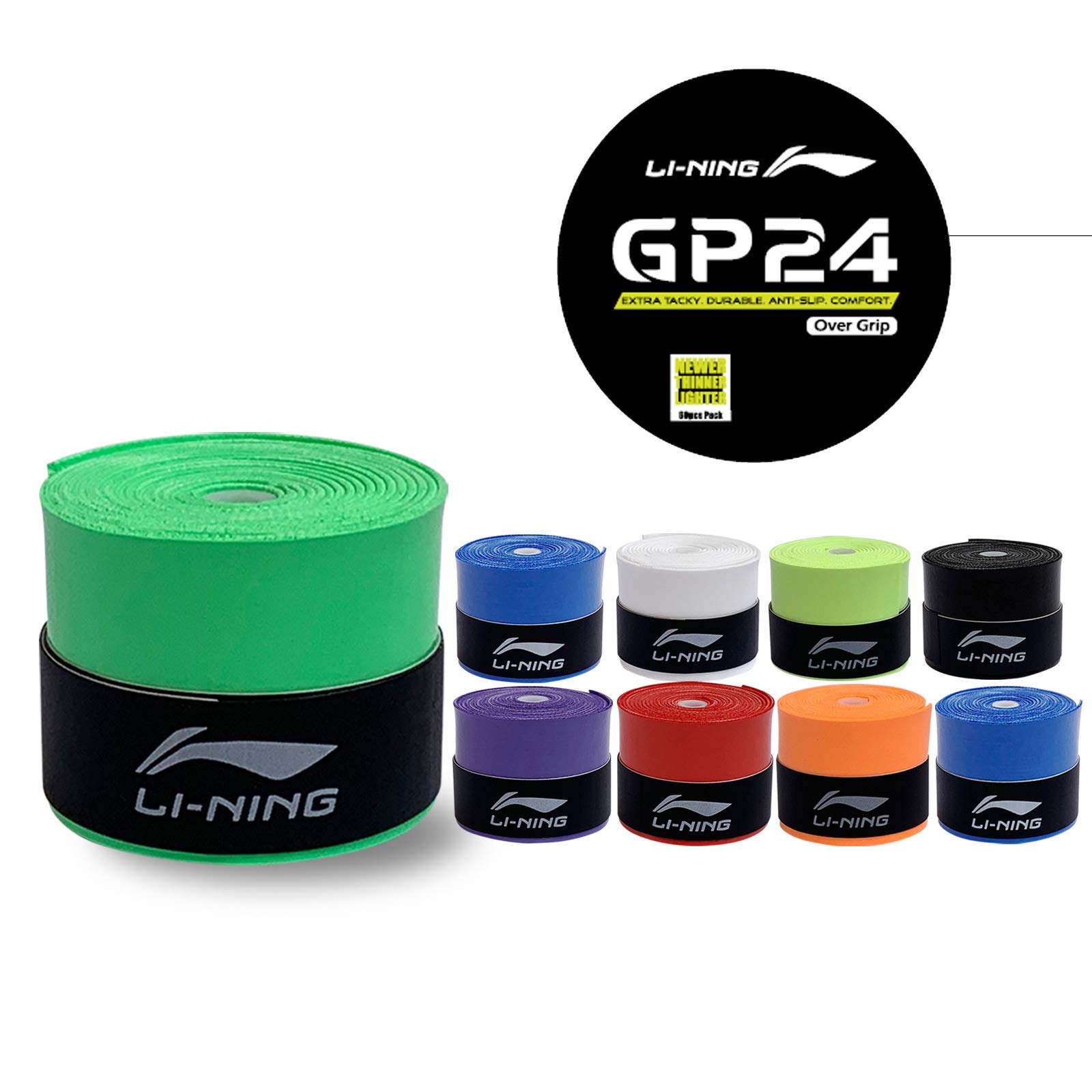 Li-Ning PU Polyurethane Badminton Replacement Grip Pack of 4 Grips (GP24 - Assorted Colour)