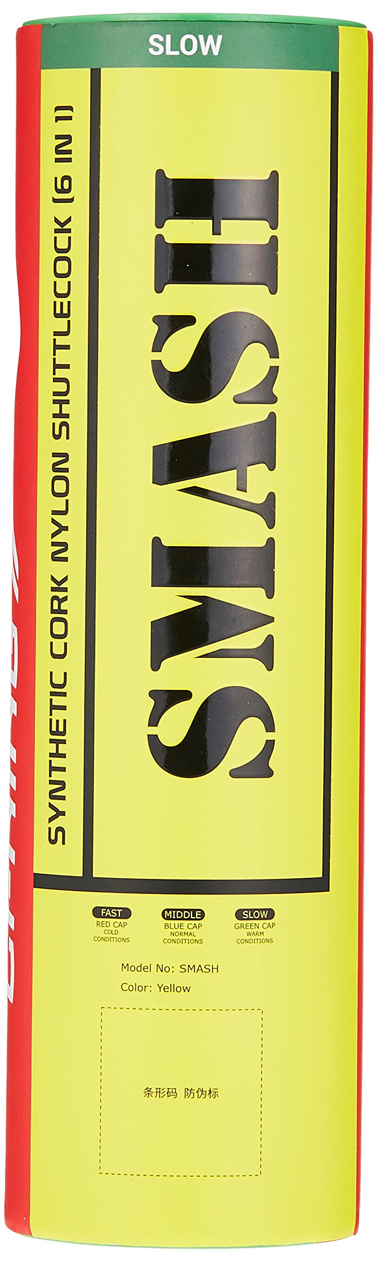Li-Ning Smash Nylon Badminton Shuttlecocks (Yellow Slow Speed) | Extreme Durability | Synthetic Cork