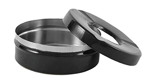 This standard-size lid ash tray is made of strong stainless steel, A great ashtray for home or for use in any bar, club, or restaurant with smoking facilities, They feature 3 resting slots rather than firm grip slots, allowing for less broken cigarettes, Multicolor lid ash tray which can provide a gorgeous look to your bar or restaurant, The design is made to work in any setting or establishment. This ashtray is a definite choice for any outdoor dining, beach bar, patio bar, and pool deck type environments, Product Dimension- 9x9x3.5 cm each, Color- Black matte, Silver Set of 2
