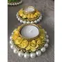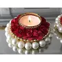 Infispace Pearl & Floral Metal Tea-Light Candle Stand with Free Wax Candles (4)