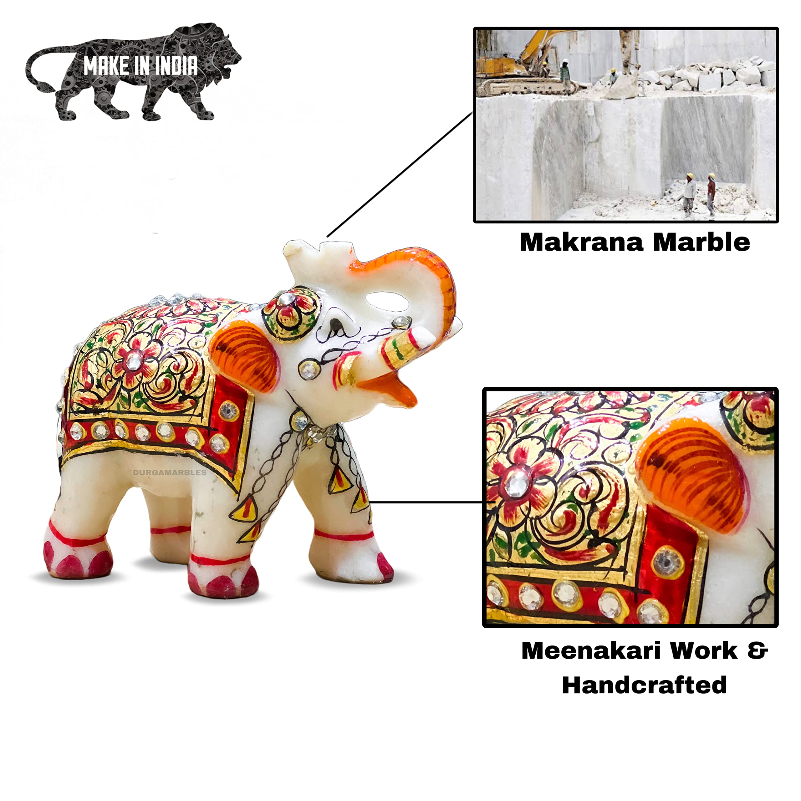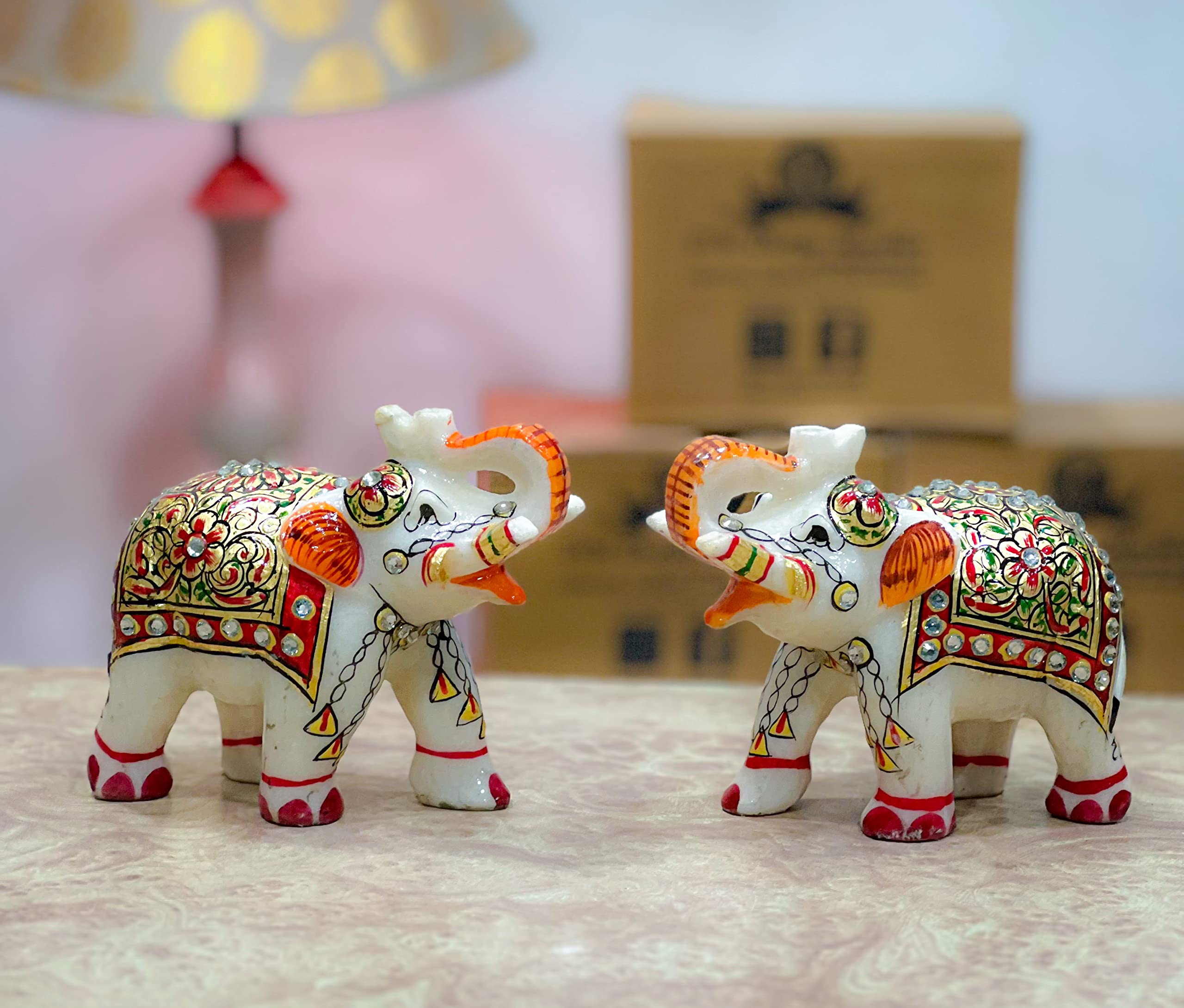 The ageless strength and dominance of the stone challenges the master stone carver to give its best. The piece is perfect example of skilled craftsmanship. These are the typical Indian Elephants in all their glory trumpeting their arrival! Each Product Is A Marvel And Can Be Said To Be A Novelty And With No Doubts Their Features And Characteristics Make Them A Worthy Addition To Your Home Decor Collection. The marble stone elephants have been Craftsmanship style precious soapstones. Indian Handicrafts Are Well Known For Their Excellent Design And Appearance. Have A Wide Selection Of Products For Every Corner Of Your Home Decor Like Living Room Bedroom Dining Room Lounge Area Garden Area Balcony Side Temple Mandir Patio Area Hall Drawing Study Room Kids Room Kitchen Shelf Decoration Table Top Decoration Office Decoration Purpose Intricately Handcrafted.