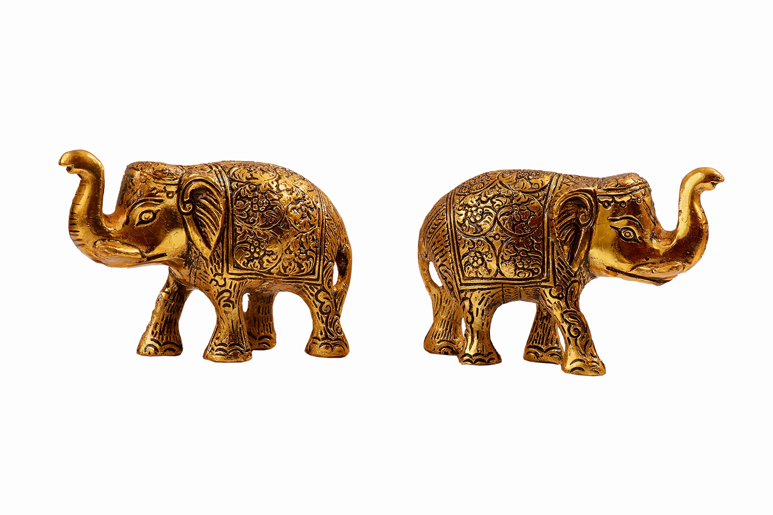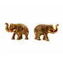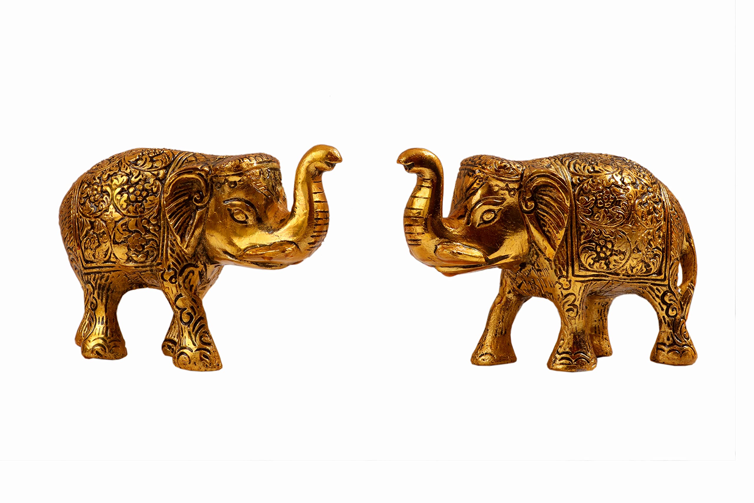 DHOKRA CRAFT Metal Set of 2 Golden Elephant Showpiece for Longevity Fortune Prosperity