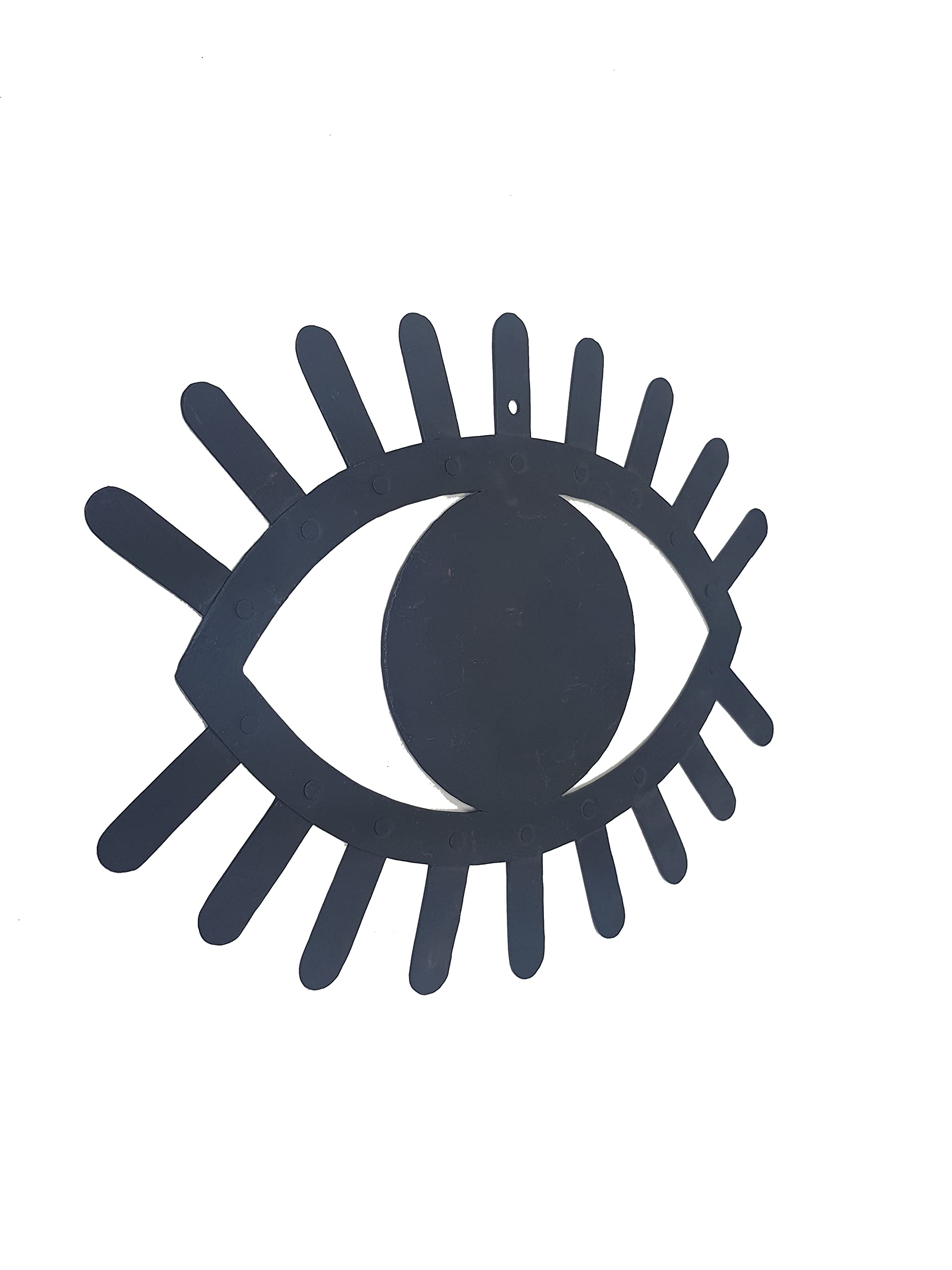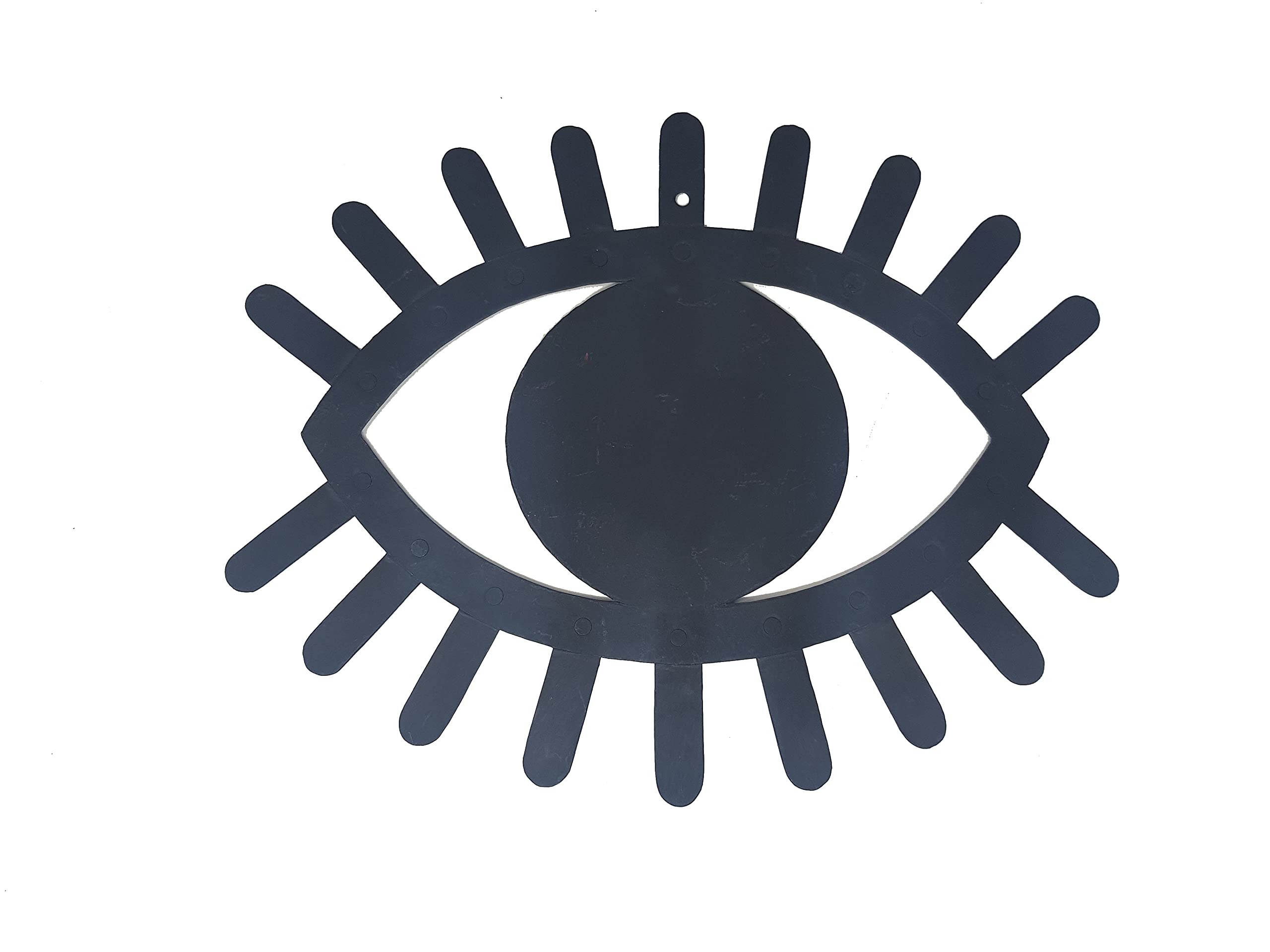 Handcrafted in Bastar Chhattisgarh this Wrought Iron Multipurpose Decorative and utilitarian piece designed depicting an Eye with Wroutht Iron can be used as Evil Eye when mounted on outside walls of your home. It looks exquisite and will be a great addition to your home and office wall. Also this tribal art piece makes for an excellent gift. Known as Wrought Iron Craft of Chhattisgarh crafted with Wrought Iron beating the iron in flame to caste this beautiful figurine this contemporary designed Key/Cloth holder through fine detailing of the craft depicts the expert craftsmanship of the artisan.