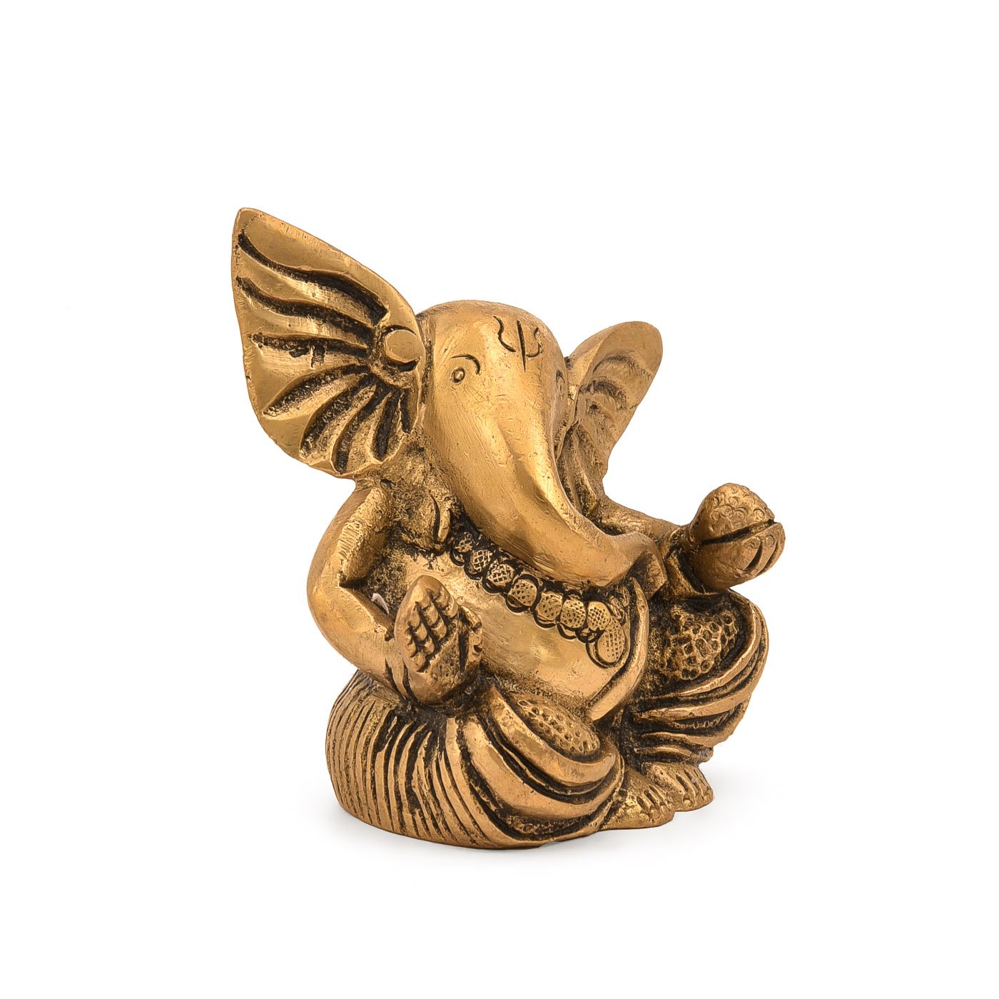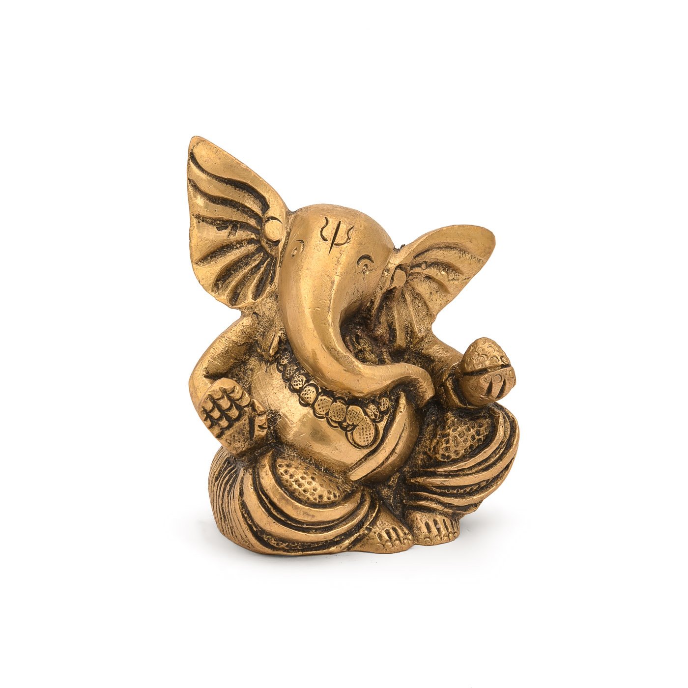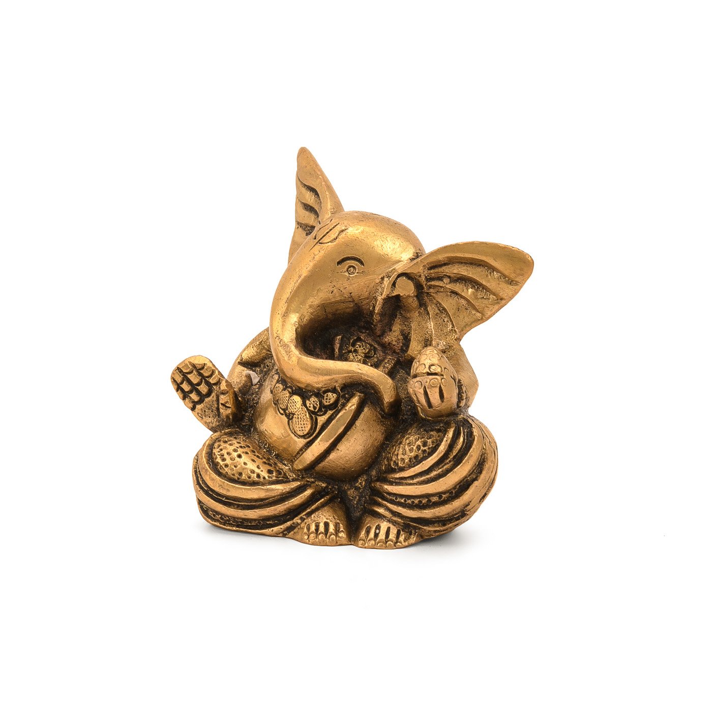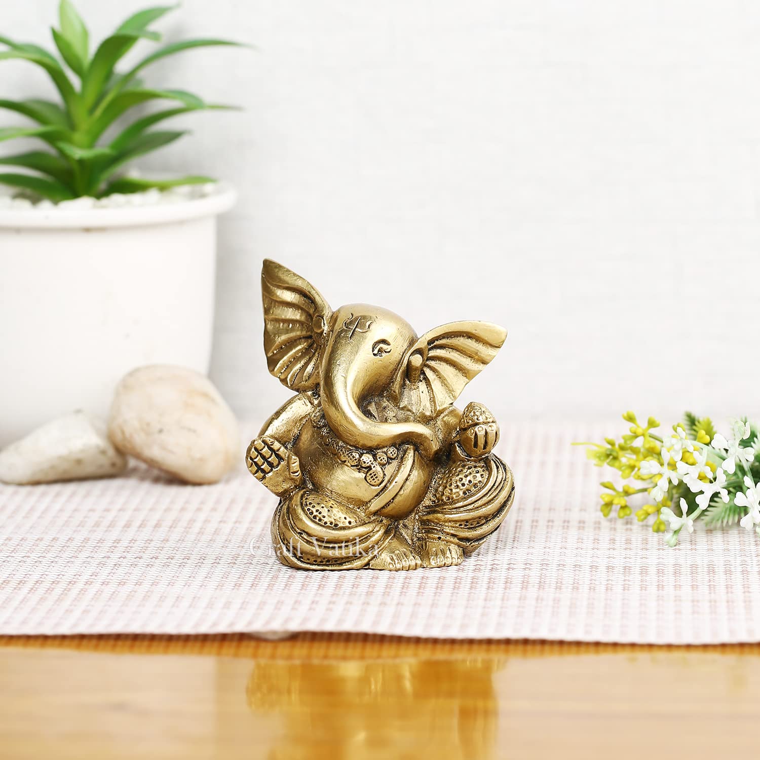 Ganesha Brass Statue Sitting Ganpati Figurine (3 x 2 Inches)