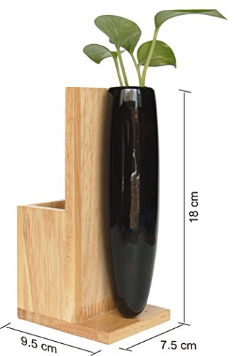 Color Name:Black"DINR" is a table top mini wooden plant holder along with a cutlery stand. A great way to add a lively little plant to your dining table or kitchen. Fill the glass tube provided with water and allow your plant to grow in it. Suitable for plants that grow with roots in water like Money Plant Wandering Zebrina Lucky Bamboo etc NOTE: Plant is not included