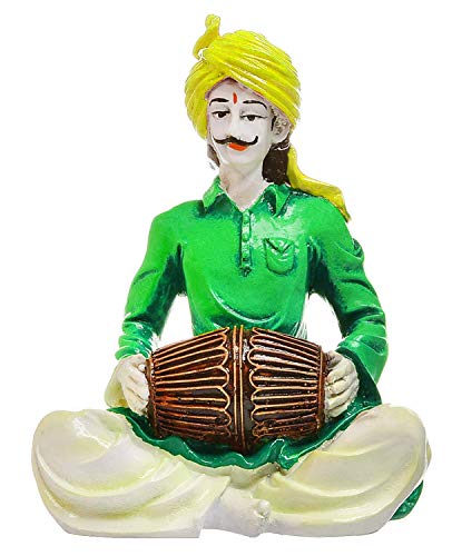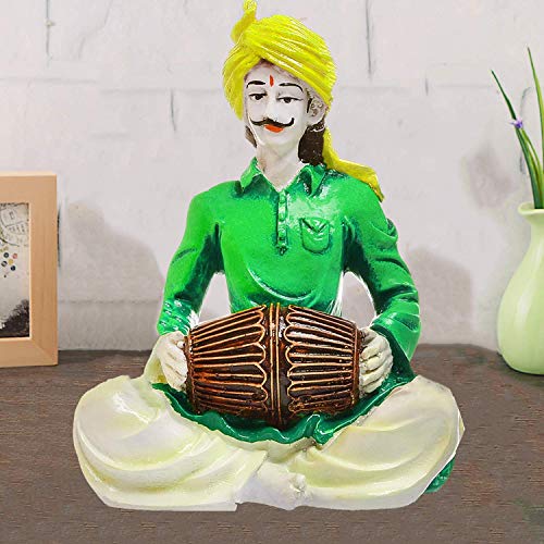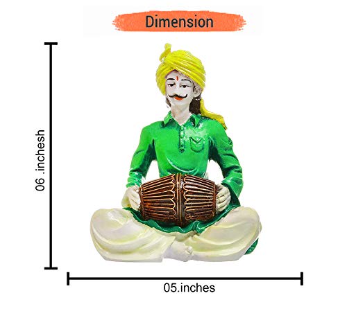 India Handcrafted Beautiful Rajasthani Men Playing Dholak Polyresine Sculpture I Showpiece for Home Decor.