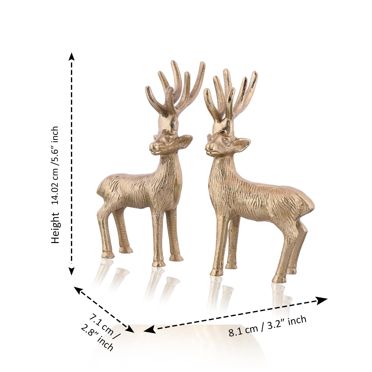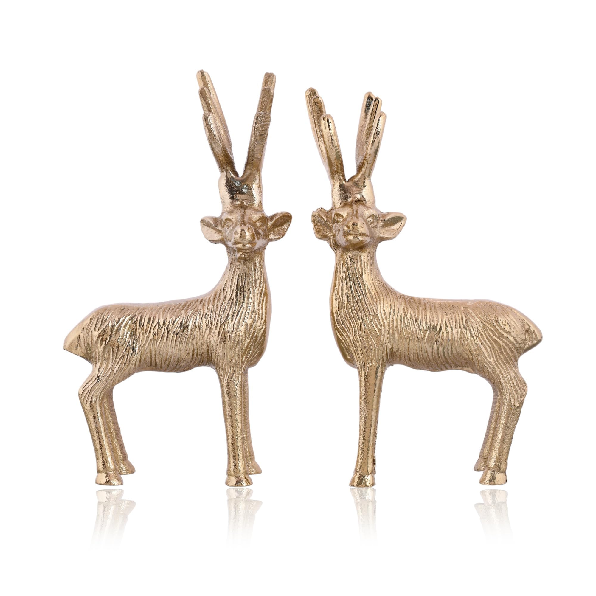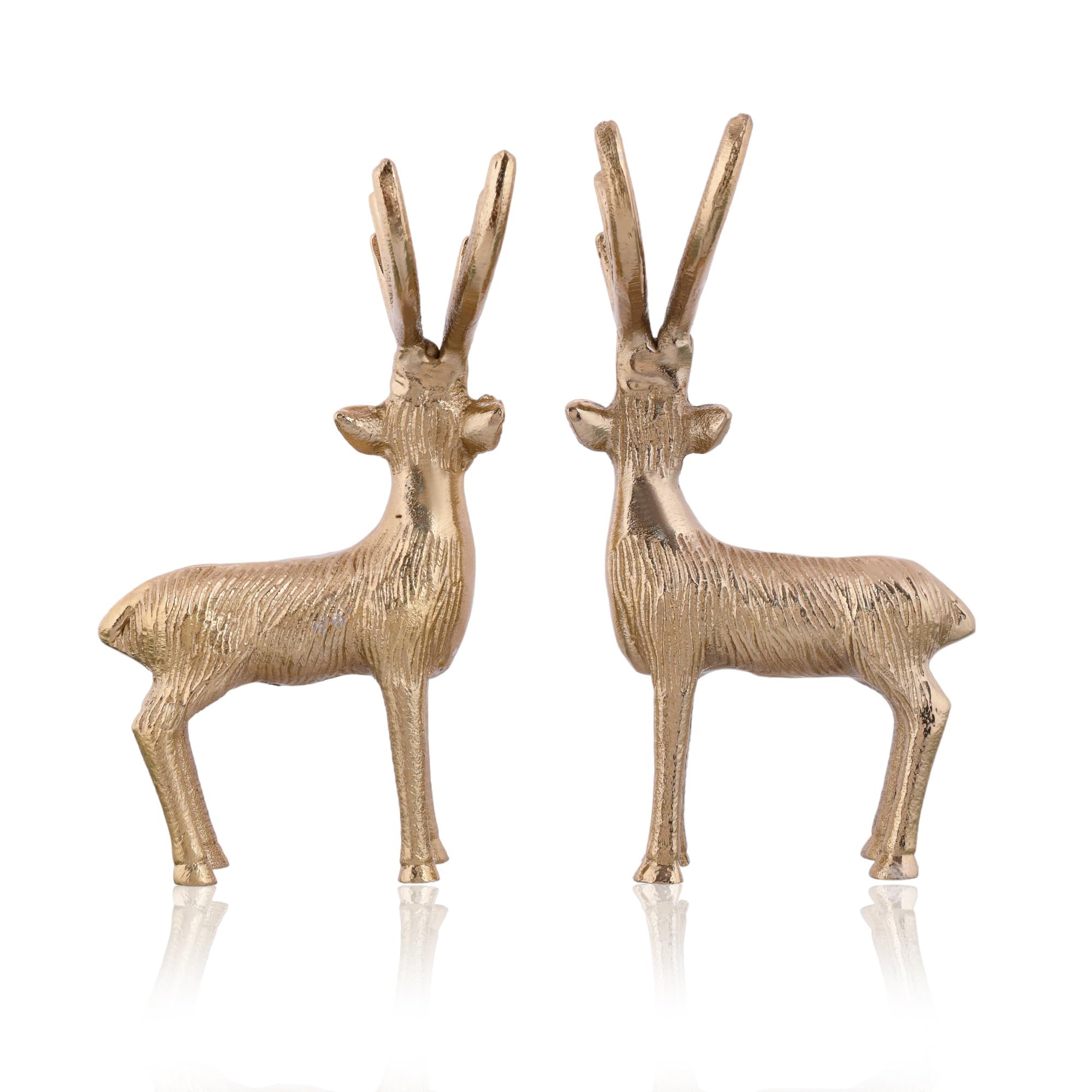 Transform your living space with this stunning Aluminum Deer Pair featuring a captivating golden finish. Crafted with meticulous attention to detail this decorative set brings a touch of elegance and nature-inspired beauty to any room. Whether you're looking to enhance your home decor or create a unique focal point these majestic deer statues are sure to impress. Elevate your home decor with the exquisite Aluminum Deer Pair with Golden Finish. Add a touch of nature's beauty and create an inviting ambiance that will captivate all who enter your space.