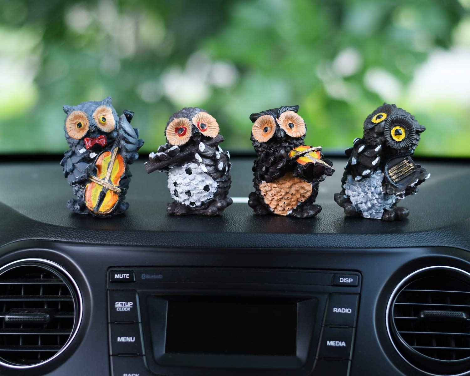The musical set: the theme is orchestra owl and each one handles a musical instrument. Guitar violin flute and accordian. Each character is a conversation piece eye catcher and brings joy to any porch deck lawn garden or home.