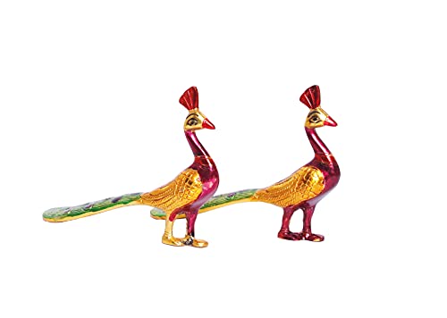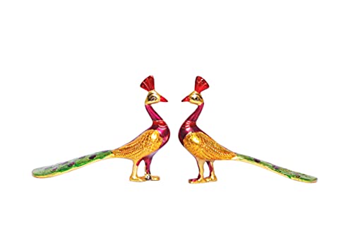 • Metal Peacock Couple Staute (2 Pcs set) :- Size- (LXWXH) 17 X 4 X 12 CM || Weight- 280 Grams || Material: Metal (Aluminium) || Color :- Multicolor