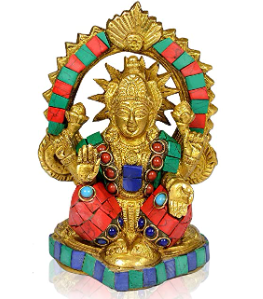 • Goddess Maa Laxmi Brass with stone Idol for Diwali Pujan and Home Décor