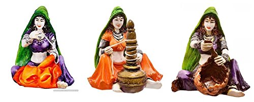 Rajasthani Ladies Polyresine Showpiece (15.24 cm x 15.24 cm x 12.7 cm Set of 3)