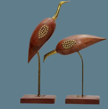 The SAHARANPUR HANDICRAFTS decor your home with this beautiful Swan Statue a name known for making good-quality antique and stylish products. The pair of beautiful swan statue from the house of kaper enterprises is considered a Feng shui symbolising love and luck. According to Chinese beliefs if placed together the pair of mandarin swan can speed up your search for a soul mate or even settle issues between spouses. Place the pair beautiful swan in your bedroom or living room and enhance the beauty of your decor. Other than bringing good luck home they can be added to your show piece collection to uplift your interior decor.Made of pure brass and sheesham wood the pair looks attractive with colourful designs and prints and is quite durable. These easy to clean show piece set can enhance the beauty of your decor.Saras Couple Set is a highly demanding product in Wooden Handicrafts. It is a very romantic gift item as it disperses love and happiness. These elegant & precious decorative figures can be used as drawing / living room interior decoration showpieces / table decor items a positive impact: as per vastu methology- handicrafts designer showpieces placed in drawing / living /bed room brings health peace & happiness among the home members like mother father husband wife brother sister son daughter & friend . A perfect gift: it is a best unique gift for marriage anniversary parents mothers day wedding return gift birthday house warming office / shop inaugration festive occasions - like diwali raksha bandhan grah pravesh and corporate gifts