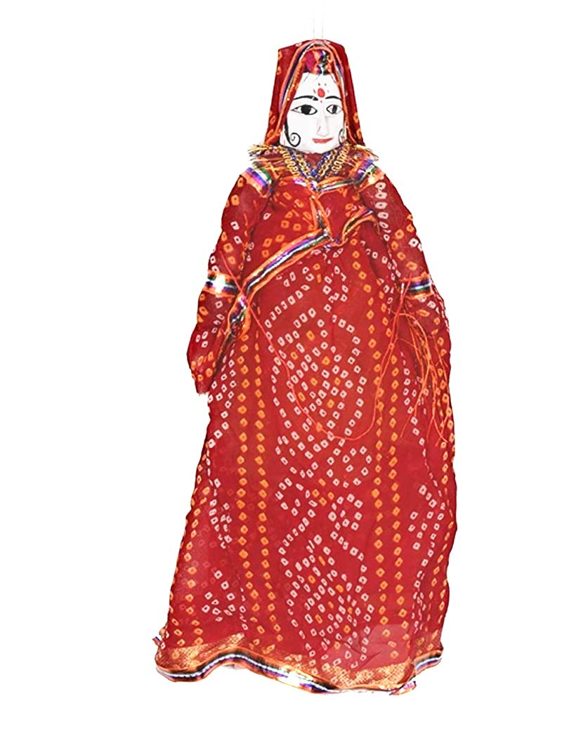 About Brand: RAJASTHANI PUPPETS is a rapidly emerging brand in Indian contemporary market. With an increase in Indias youth for the likeness of Indian Rajasthani Handicrafts & Antiques Bandhani clothes. Our brand has made a significant remark among Art Lovers. Our Philosophy is to bring together the world with the skilled craftsmen in remote India and doing everything in best possible way to get the unique art to the Buyer. Modern life is busy but never forget to slow down your pace and relax yourself our handicraft & furniture are the best medium to do so. About Product: RAJASTHANI PUPPETS Rajasthani Puppets (Kathputli) is a string puppet native to Rajasthan and is an ancient and well-known form of folk entertainment it is controlled by a single string. Kathputli is a join of two rajasthani language words Kath meaning wood and Putli meaning a doll which has no life. Kathputli means a puppet which is made entirely from wood. However it is made out of wood cotton cloth and metal wire. The string puppets of Rajasthan are famous as kathputhlis in the local language and the main centres where they are prepared are Jaipur and Jodhpur. SPECIFICATION -Speciality: Rajasthani -Material: Cotton Cloth & Painted wooden face -Type: Cultural string Puppets -Size: Men: height 20" Women: height 18 -Weight: 150gm. -Colour: Red -Best use: Hang using strings given. Use in cultural events gathering and theme parties. It can also be used for Home dcor. -Package Content: 1 pair of String Puppet; includes 1 male and 1 female puppet CARE INSTRUCTIONS: Dont dip in water dust with dry cloth and clean with damp cloth. DISCLAIMER: 1. Actual Color may vary from those shown in Images due to screen color settings of device. 2. There may be difference in size by 1" to 2"Inches. Disclaimer - Puppets are made of recycled/ waste cloth and waste wood material and our poor artisans give the traditional shape by the use of recycled/ waste cloth and waste wood.