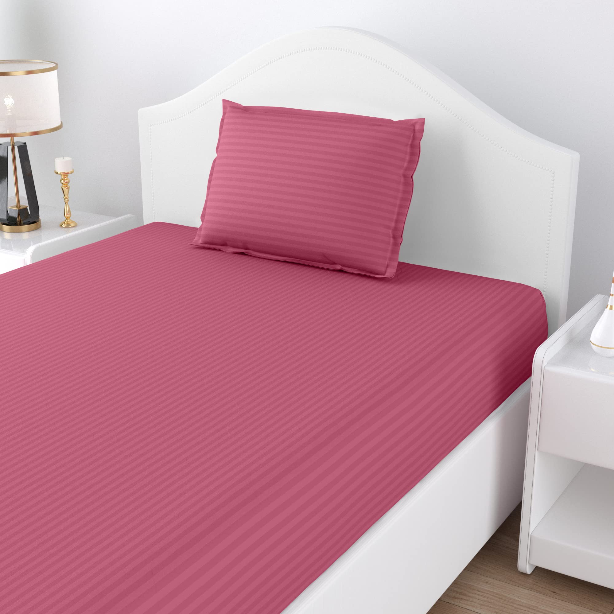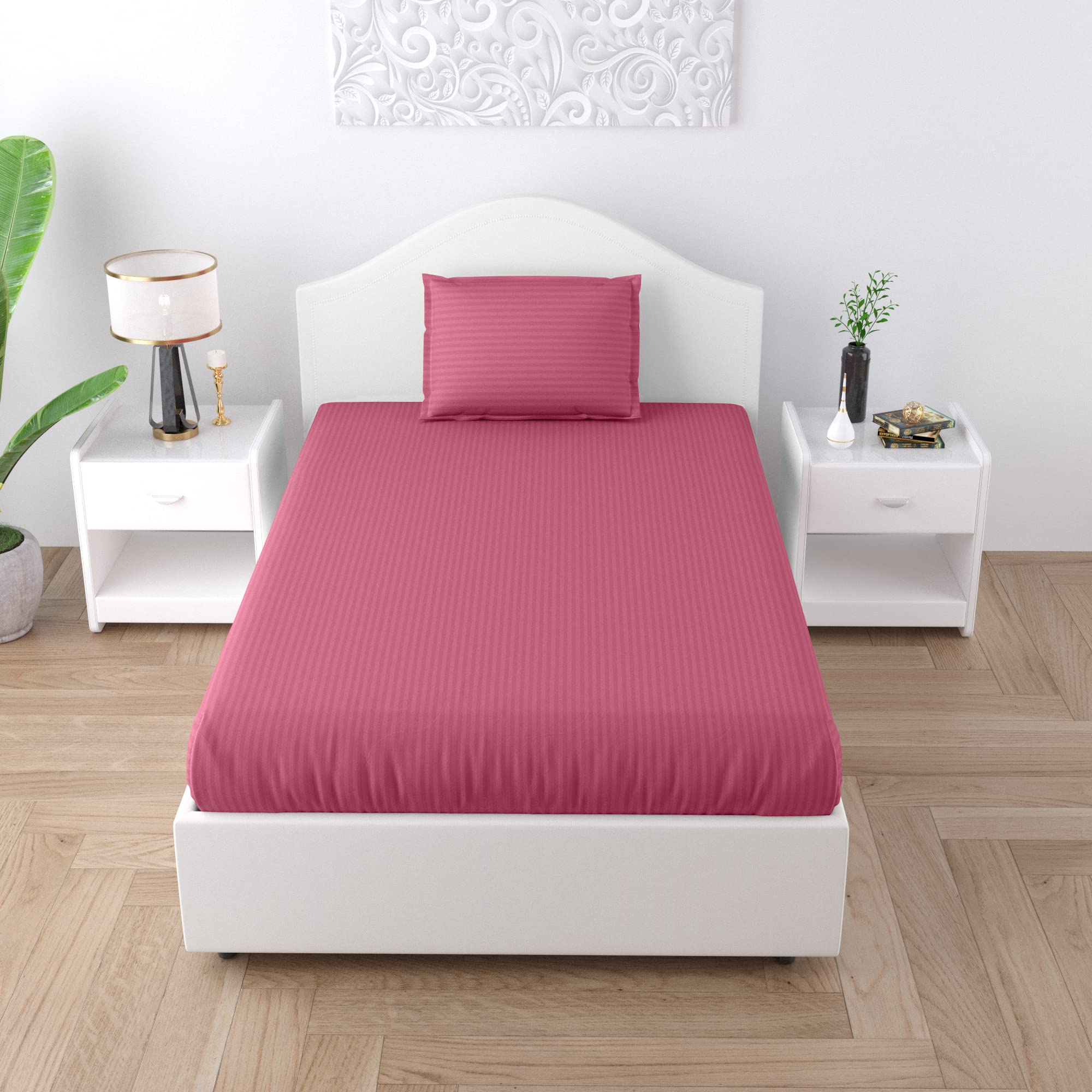 RAJASTHANI PUPPETS Rose Pink Satin Stripes Single BedSheet with Pillow Cover