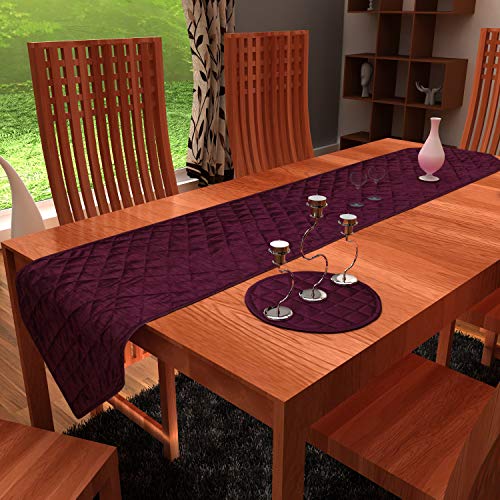 The table runner are made with polyester duiponi fabric on both side with cotton layer inside and intricate quilting for rich look by HOME BRANDS.