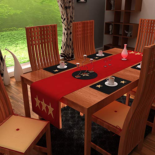 HomeHomeFurnishingsTable RunnerHOME HEART Brands Star Collection Appliqued Embroidered Table Runner and mat Set - 6 Table MAT 14" X19" & 1 Large Table Runner 14"X 72"(Pack of Seven)