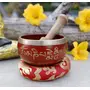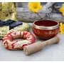 TIBETAN RITUAL CURTAIN Tibetan Meditation Om Mani Singing Bowl / Cushion / Mallet (Red)