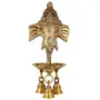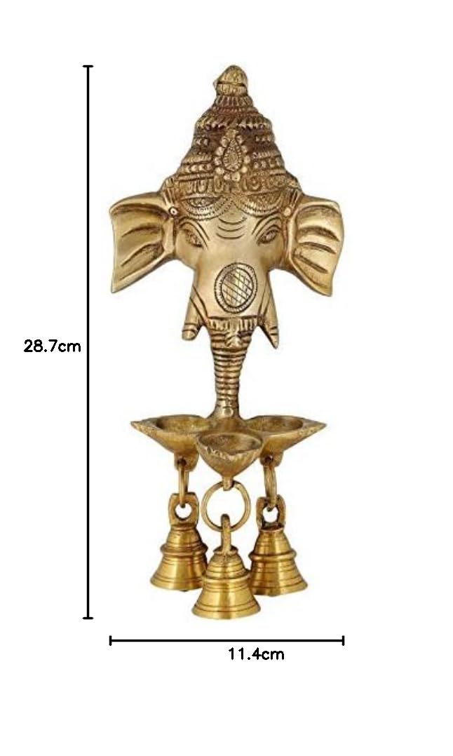 AONA Lord Gansha Decorative Face Mask Wall Hanging with Diyas and Bell - (Brass Height 11.2")