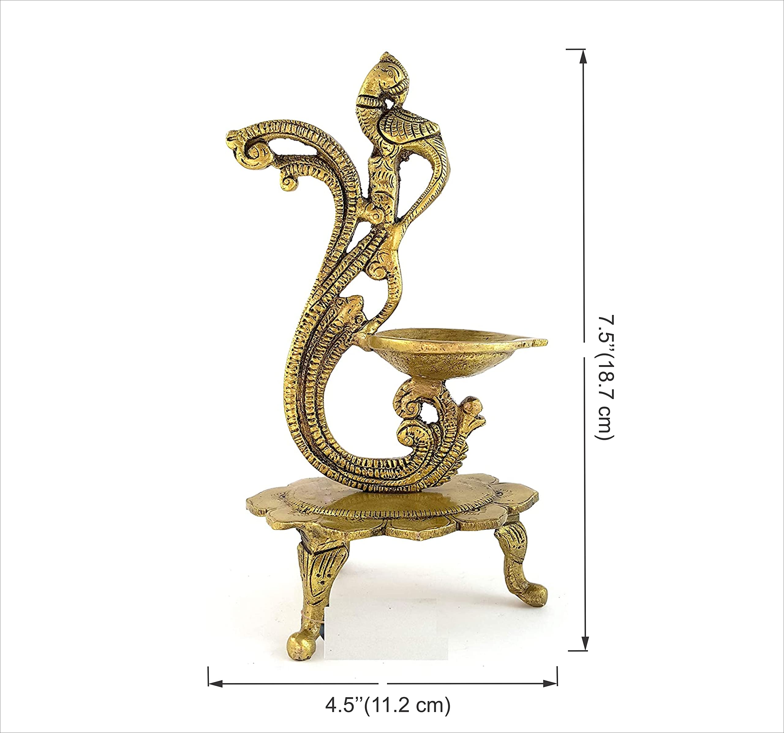 HomeHomeSpiritualEco-Friendly DiyaBEHAT BRASS WIND CHIMES - HANGING BELLS Curved Peacock Design Brass Diya (Yellow_4.5 Inch X 3 Inch X 7.5 Inch) Standard Material - Brass Pack of 1