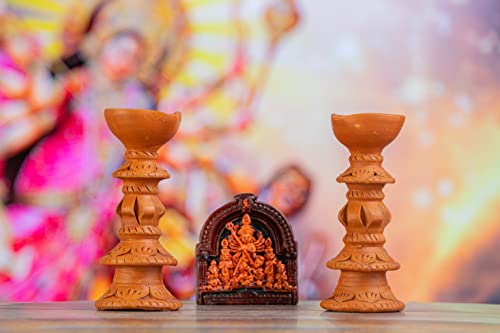 This diya will enhance your home decor and holiday festivities. Traditional handmade earthen clay diyas a splash of colour to your home. Use them instead of decorative lights to brighten your home during the festival. Made of clay natural colours no artificial colours added 100% environmentally friendly. A one-of-a-kind terracotta diya for your puja room. Handmade item with a unique design. A fantastic option for everyday use at home. The product is washable and comes in a natural terracotta colour. The design can protect the flame from the elements.