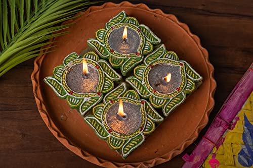 This diya will enhance your home decor and holiday festivities. Traditional handmade earthen clay diyas a splash of colour to your home. Use them instead of decorative lights to brighten your home during the festival. Made of clay natural colours no artificial colours added 100% environmentally friendly Diya. A one-of-a-kind terracotta diya for your puja room Diya. Handmade item with a unique design Diya.