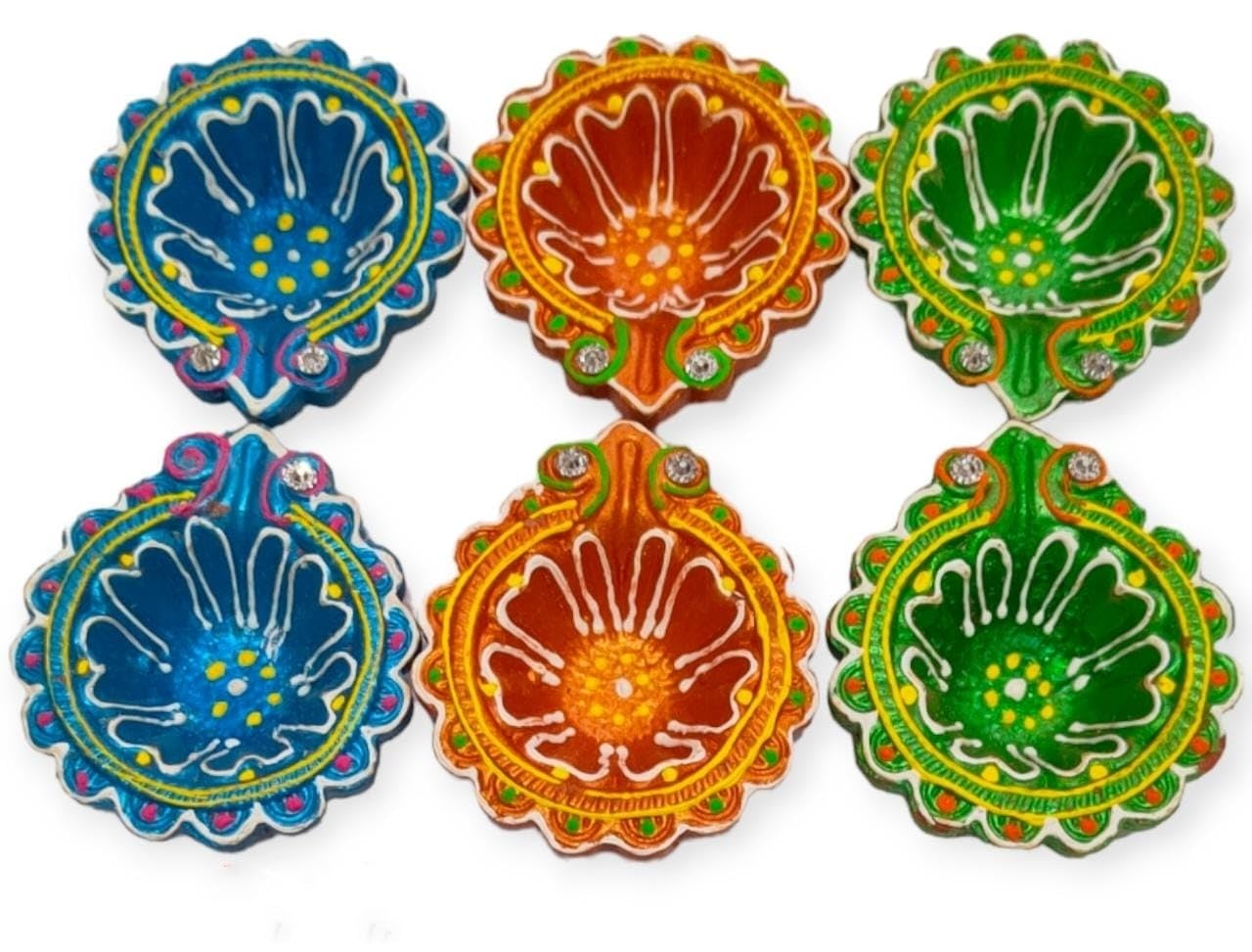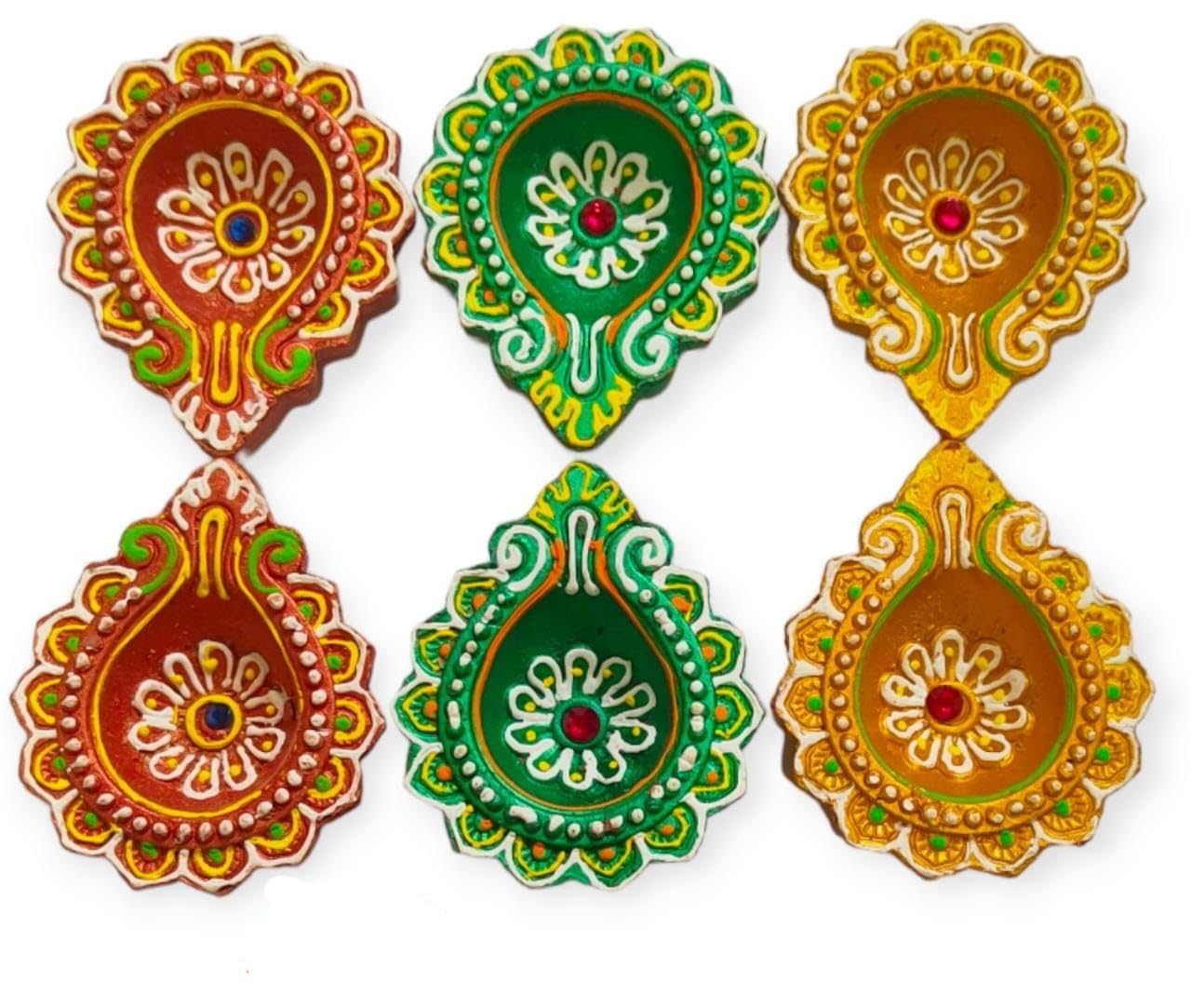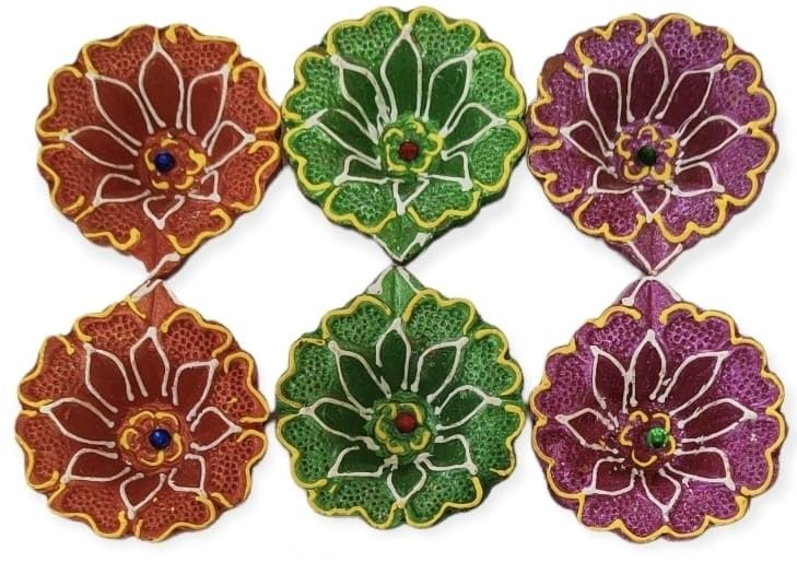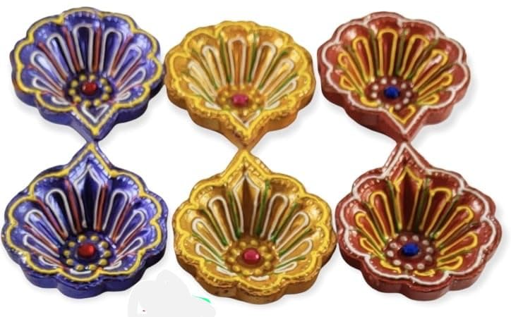 VARANASI WOODEN TOYS has added a fabulous offer of 24 pieces of diwali diya dhamaka. 24-piece Kartikeya Deepam diya set is to make your festive moments memorable with lights. The celebration of the festival of light Diwali and Karthigai will be very ominous and hearty when you lighten the traditional terracotta designer diya set and decorate your rangoli balcony and terrace with them. Your home will put on a vibrant but peaceful look. Diwali is celebrated to perish the dark and evil power and replace it with lights. On the other hand Karthigai is also a festival of light that is celebrated pompously throughout South India. This year our diyas have taken responsibility to illuminate your home as well as your life. VARANASI WOODEN TOYS mitti deepak or oil designer Kartikeya deepam diya set of 24 has been crafted by the rural potters. The diyas are the manifestation of the artisans' heart and soul effort. Their imaginations have been reflected in each and every diya whether it be in design shape or color. The terracotta oil deepak set is an adorable gift for your loved ones on Diwali Kartikeya Deepam and Karthigai to make their festival bright and glowing. The diyas are multicolored and in various shapes. All the deepaks are elegant and beautiful. They are lightweight and would be durable. NOTE: THE DESIGNER DIYA WILL BE SENT ACCORDING TO THE AVAILABILITY OF COLOUR. NOTE: PLEASE CHECK THE MEASUREMENT OF THE PRODUCTS TWICE BEFORE PLACING AN ORDER.