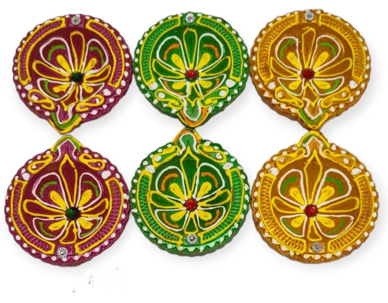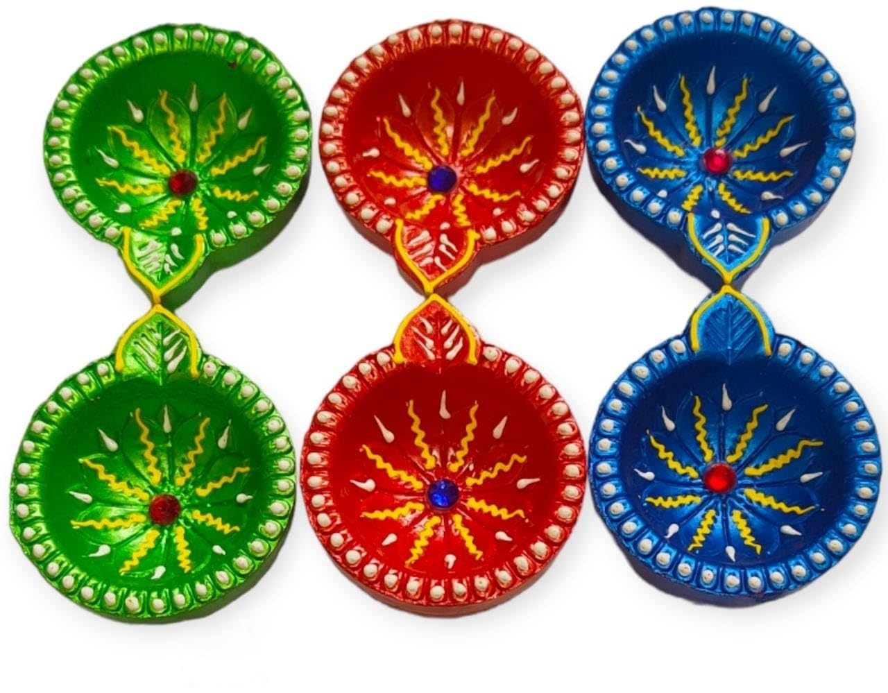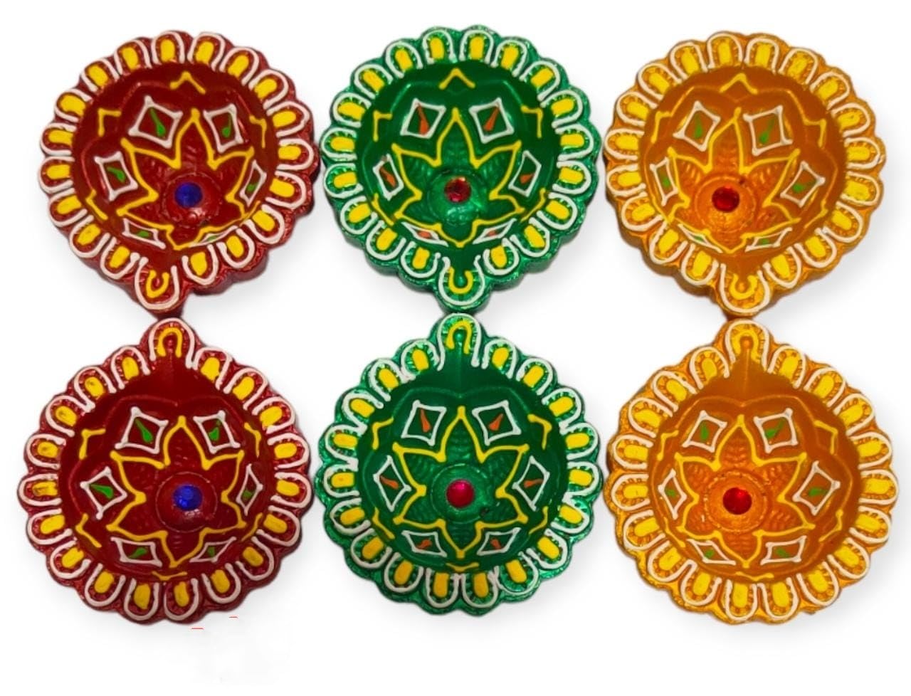 VARANASI WOODEN TOYS has added a fabulous offer of 24 pieces of diwali diya dhamaka. 24-piece Kartikeya Deepam diya set is to make your festive moments memorable with lights. The celebration of the festival of light Diwali and Karthigai will be very ominous and hearty when you lighten the traditional terracotta designer diya set and decorate your rangoli balcony and terrace with them. Your home will put on a vibrant but peaceful look. Diwali is celebrated to perish the dark and evil power and replace it with lights. On the other hand Karthigai is also a festival of light that is celebrated pompously throughout South India. This year our diyas have taken responsibility to illuminate your home as well as your life. VARANASI WOODEN TOYS mitti deepak or oil designer Kartikeya deepam diya set of 24 has been crafted by the rural potters. The diyas are the manifestation of the artisans' heart and soul effort. Their imaginations have been reflected in each and every diya whether it be in design shape or color. The terracotta oil deepak set is an adorable gift for your loved ones on Diwali Kartikeya Deepam and Karthigai to make their festival bright and glowing. The diyas are multicolored and in various shapes. All the deepaks are elegant and beautiful. They are lightweight and would be durable. NOTE: THE DESIGNER DIYA WILL BE SENT ACCORDING TO THE AVAILABILITY OF COLOUR. NOTE: PLEASE CHECK THE MEASUREMENT OF THE PRODUCTS TWICE BEFORE PLACING AN ORDER.