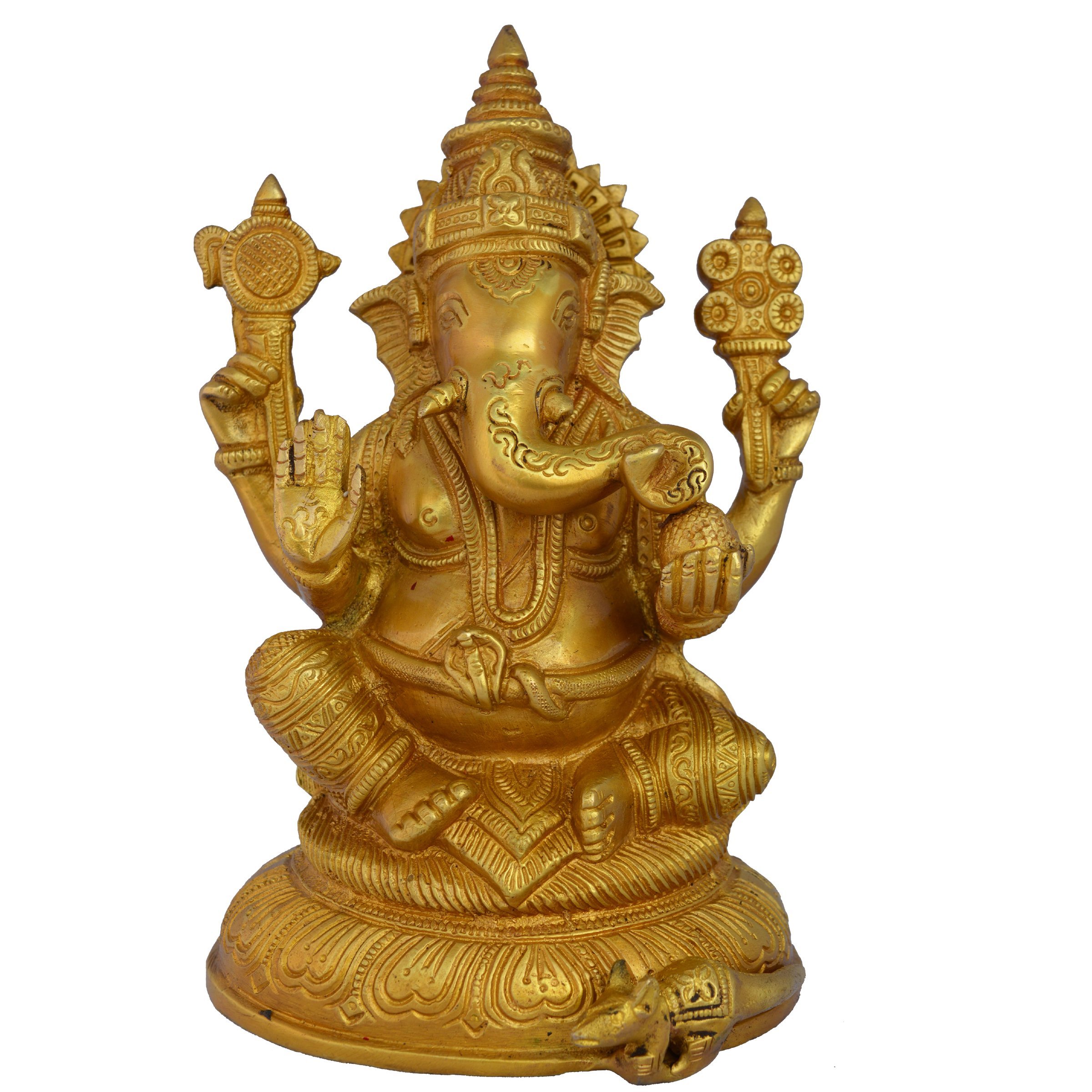 Aakrati Lord Ganesha Brass Blessing Religious Statue for Prosperity Yellow