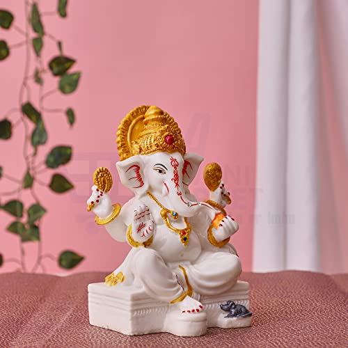Cute adorable & beautiful- This Ganpati murti / Ganesh statue / Special Diwali decoration items for home decor is made of Marble Dust and off white in color. This cute ganpati idol for home decor is the best lord ganesha statue.