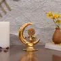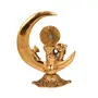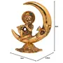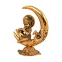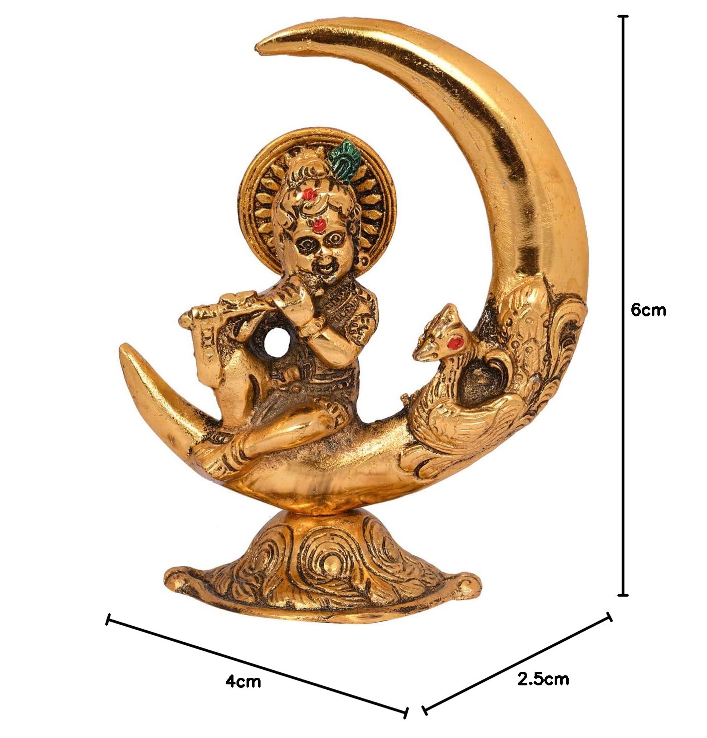 This metal Antique gold finish Lord Krishna sitting on moon shaped motif . It's made of white metal. You can keep this figurine as worship item in puja room or present as gifts. A breath-taking work of art this show piece will be a centre of attention! Golden color makes this Lord Krishna playing flute figurine an outstanding home decor! Puja room will dazzle with this lovely Lord Krishna figurine!