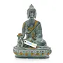 This is a great piece of valuable collection a valuable personal alter or very good present .The handwork is very fine with incredible detailing. This unique work of art is ideal as a temple sculpture or statue. Hand-carved by our skillful craftsmen .Enhance your home and garden by this graceful new Statue symbol of peace & Harmony. Medicine Buddha is an enlightened being who has unbiased compassion for all living beings. He protects living beings from physical and mental sickness and other dangers and obstacles and helps them to eradicate the three poisons - attachment hatred and ignorance - which are the source of all sickness and danger. Medicine Buddha came with his two main disciples Radiance of the Sun and Radiance of the Moon. Deepen your worship or add distinction to your decor with a genuine handmade Indian statue unlike anything you've seen before.Size : 8 Inches Height X 6 Inches wide X 4 Inches depth.Weight : 1.8 Kg.Material : Brass with antique Green Gold Finish.