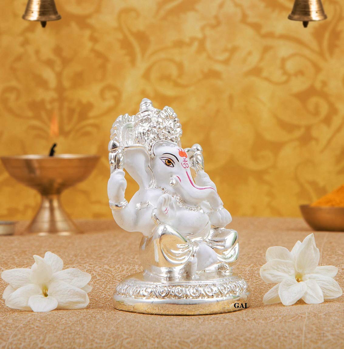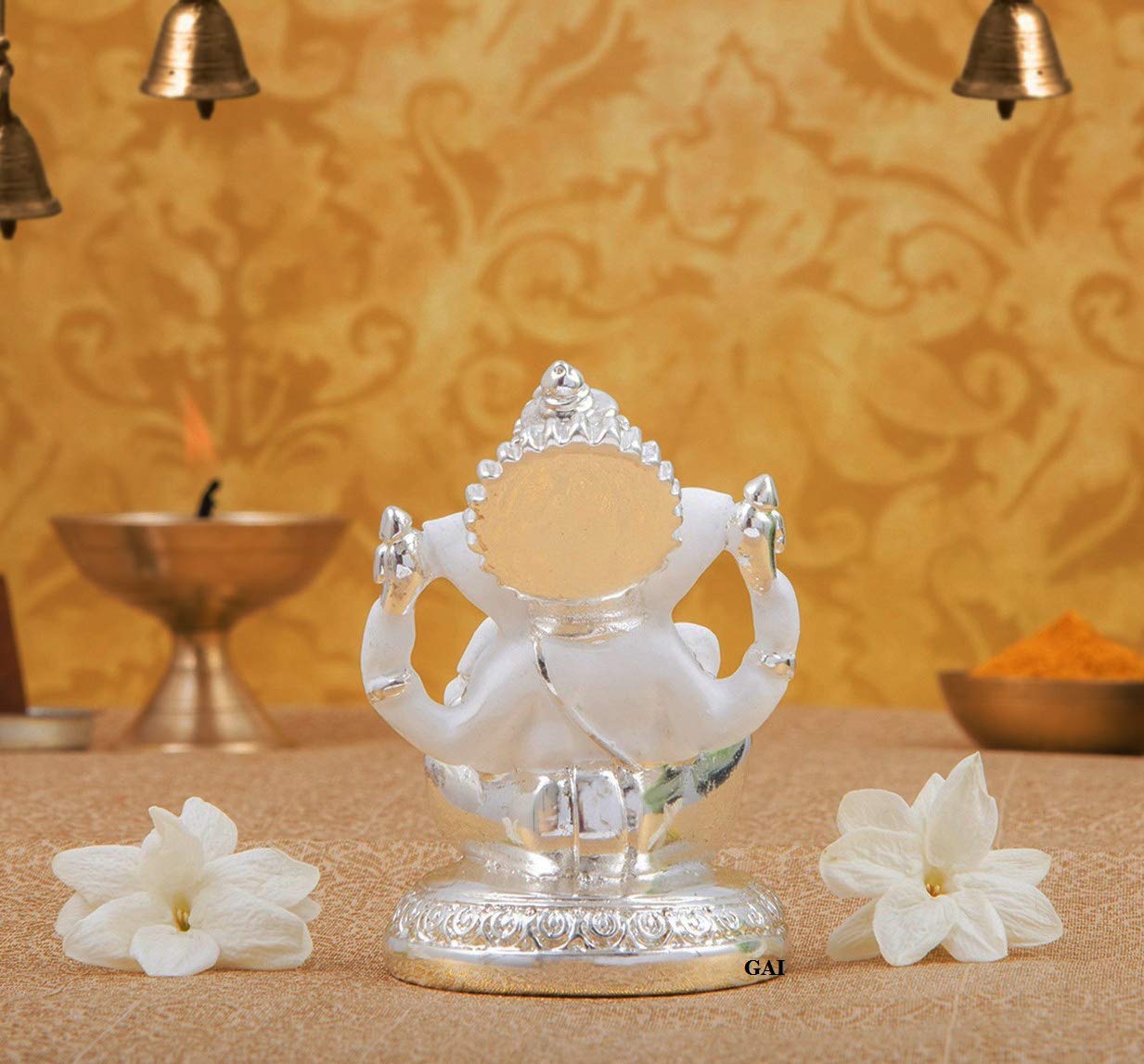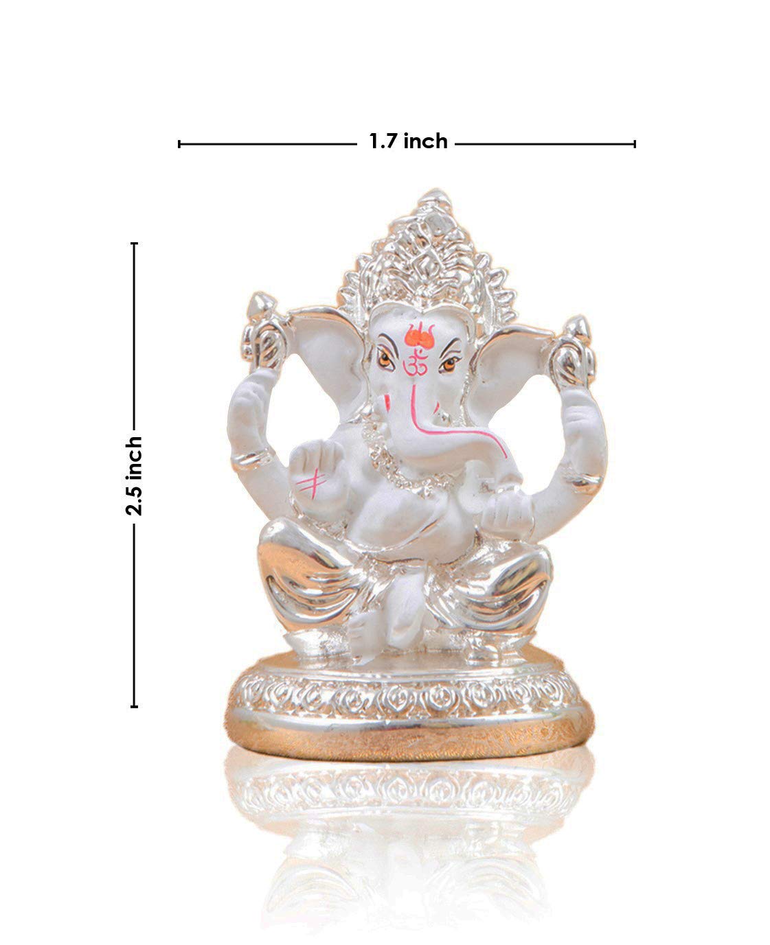 CHURU SILVERWARE Ceramic Lord Ganesh Idol 7X4X4 Cm Silver and White
