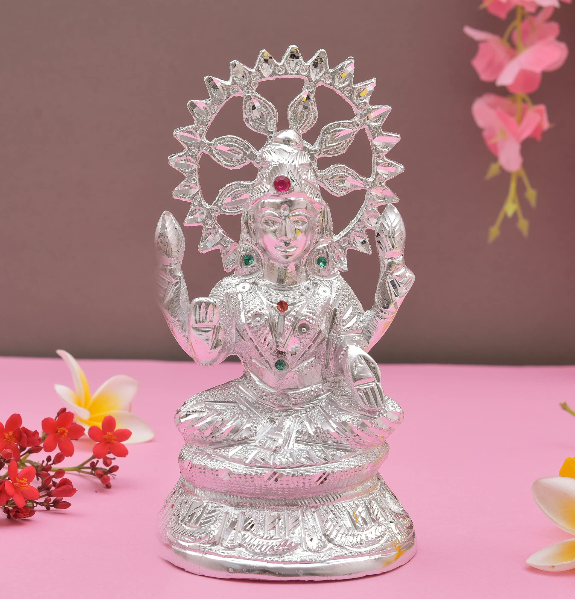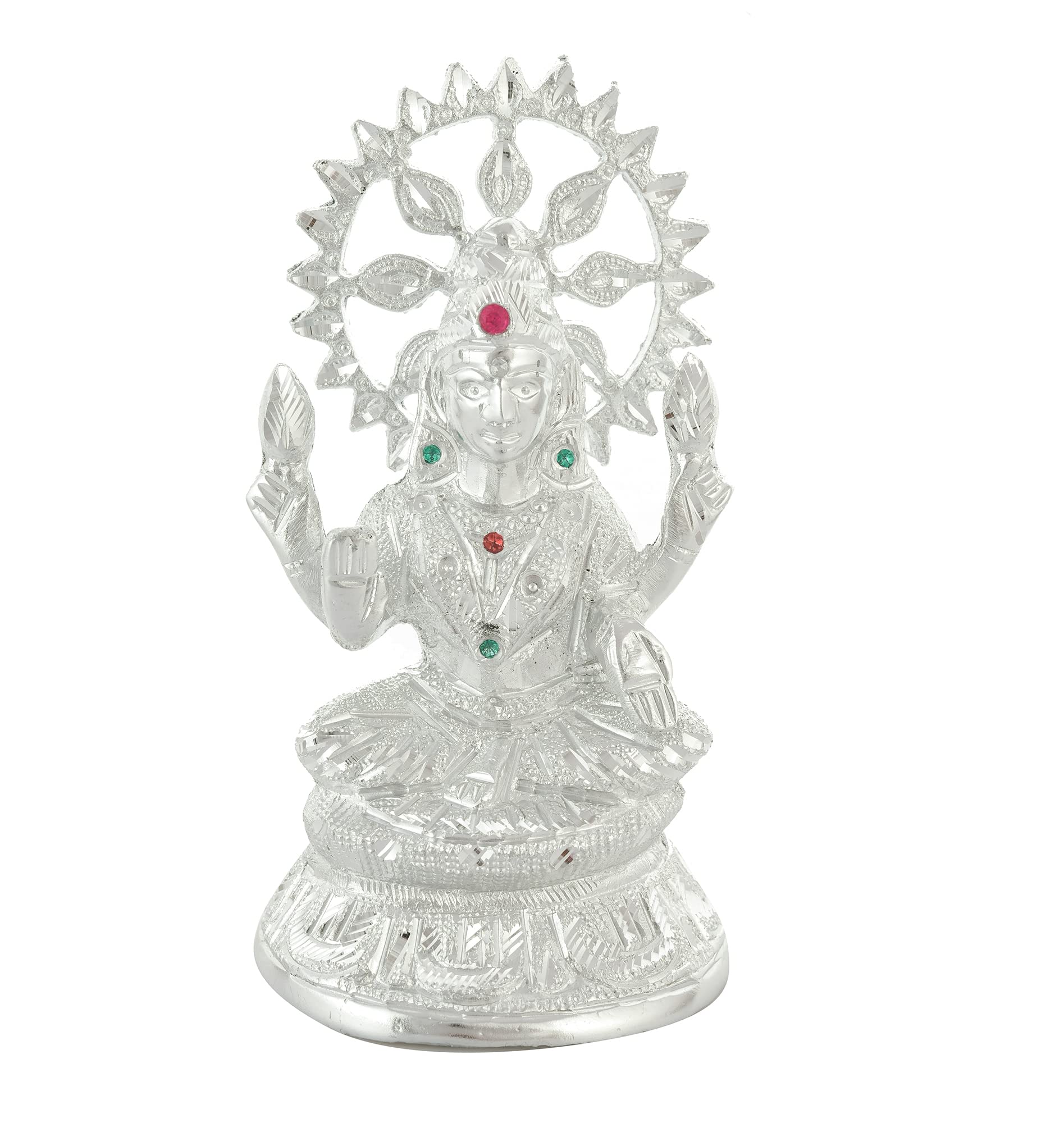 CHURU SILVERWARE Goddess Lakshmi ji Metal Idol Statue Marble Dust Goddess of Money & Wealth Statue laxmi Maa Sculpture