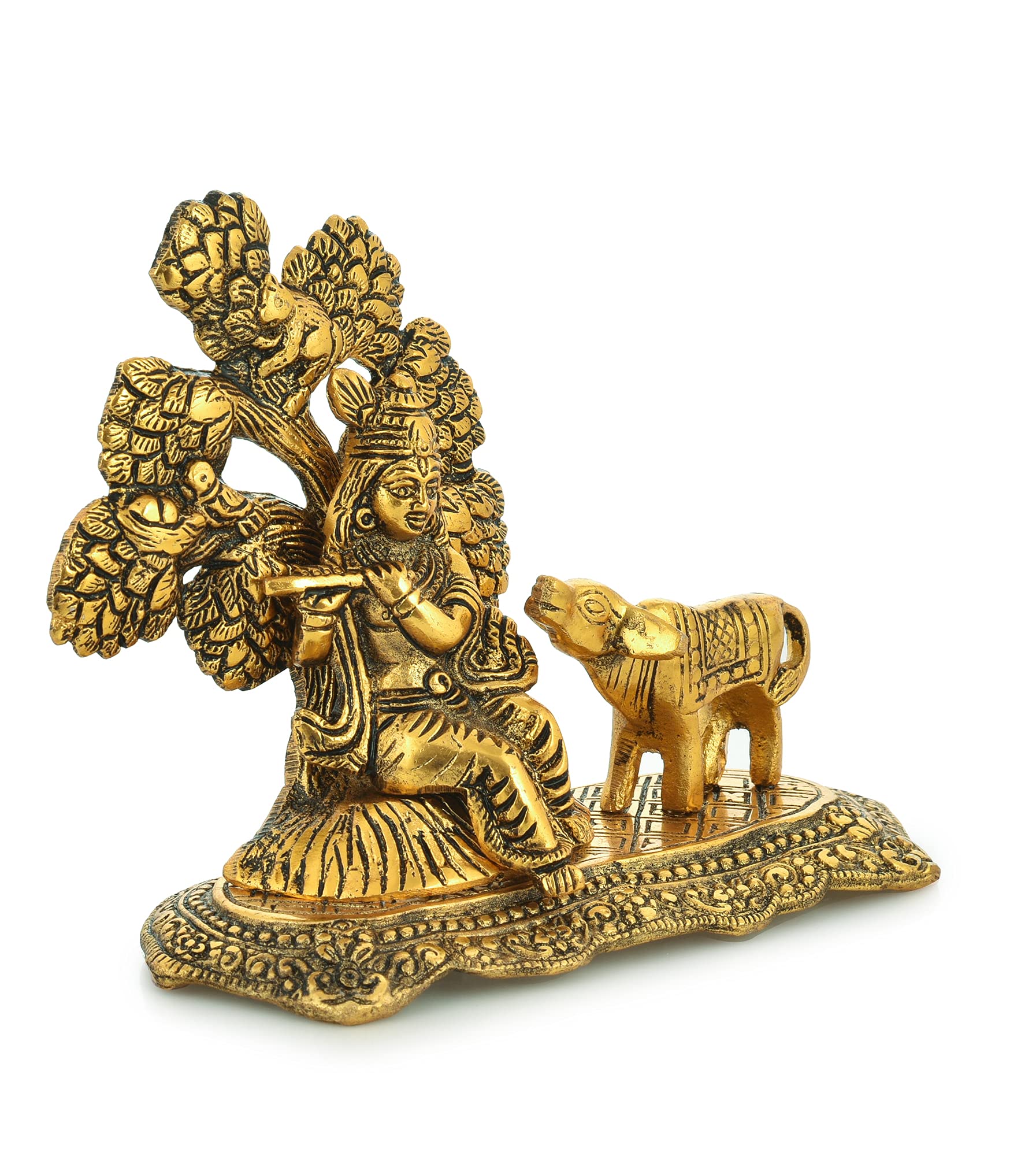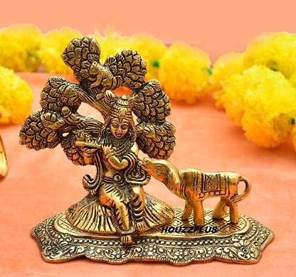 [WHAT IS IN BOX]- A ANTIQUE DESIGN KRISHNA IDOL MADE UP OF METAL THAT CAN BE USED FOR OFFICE AND HOME