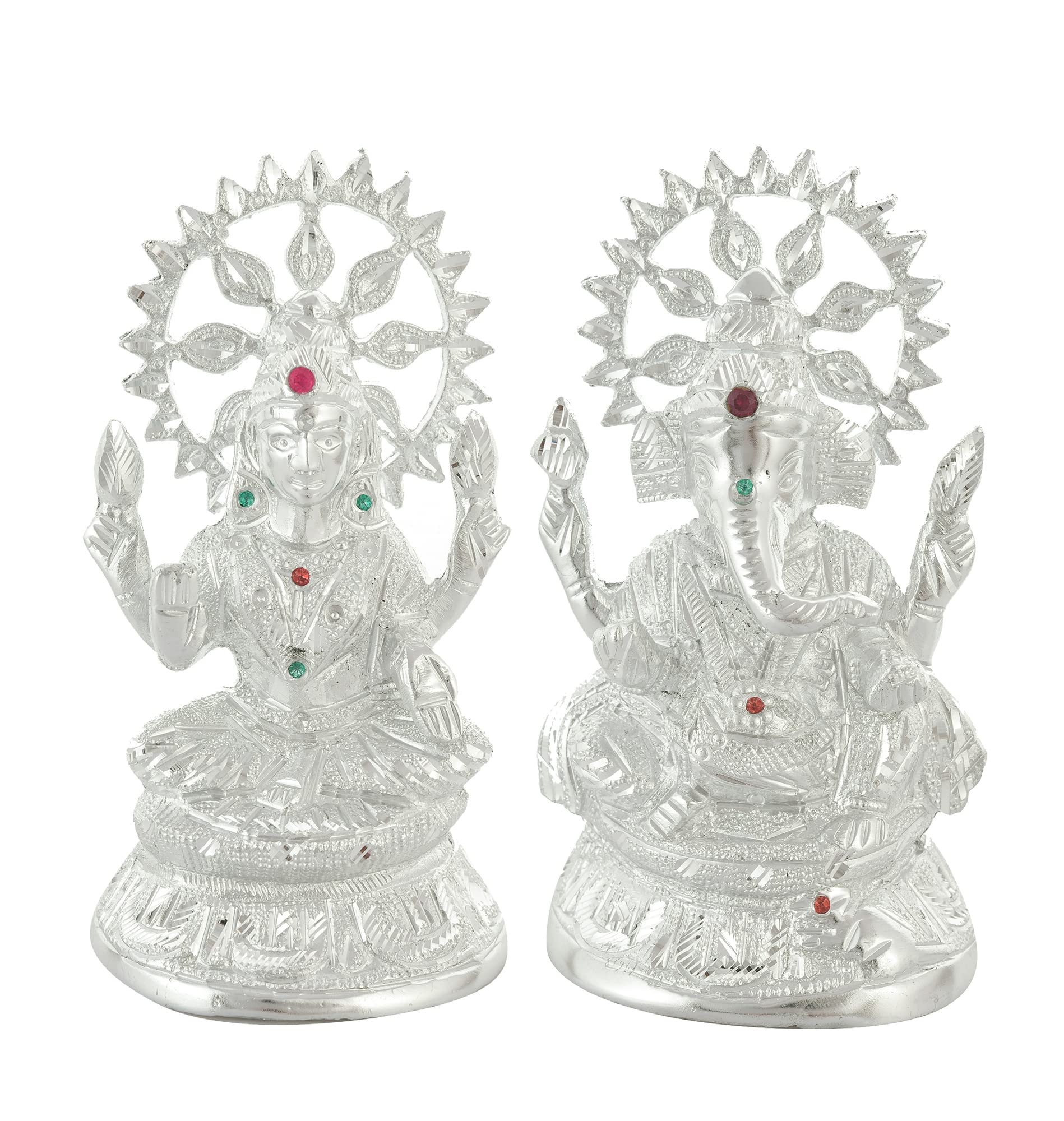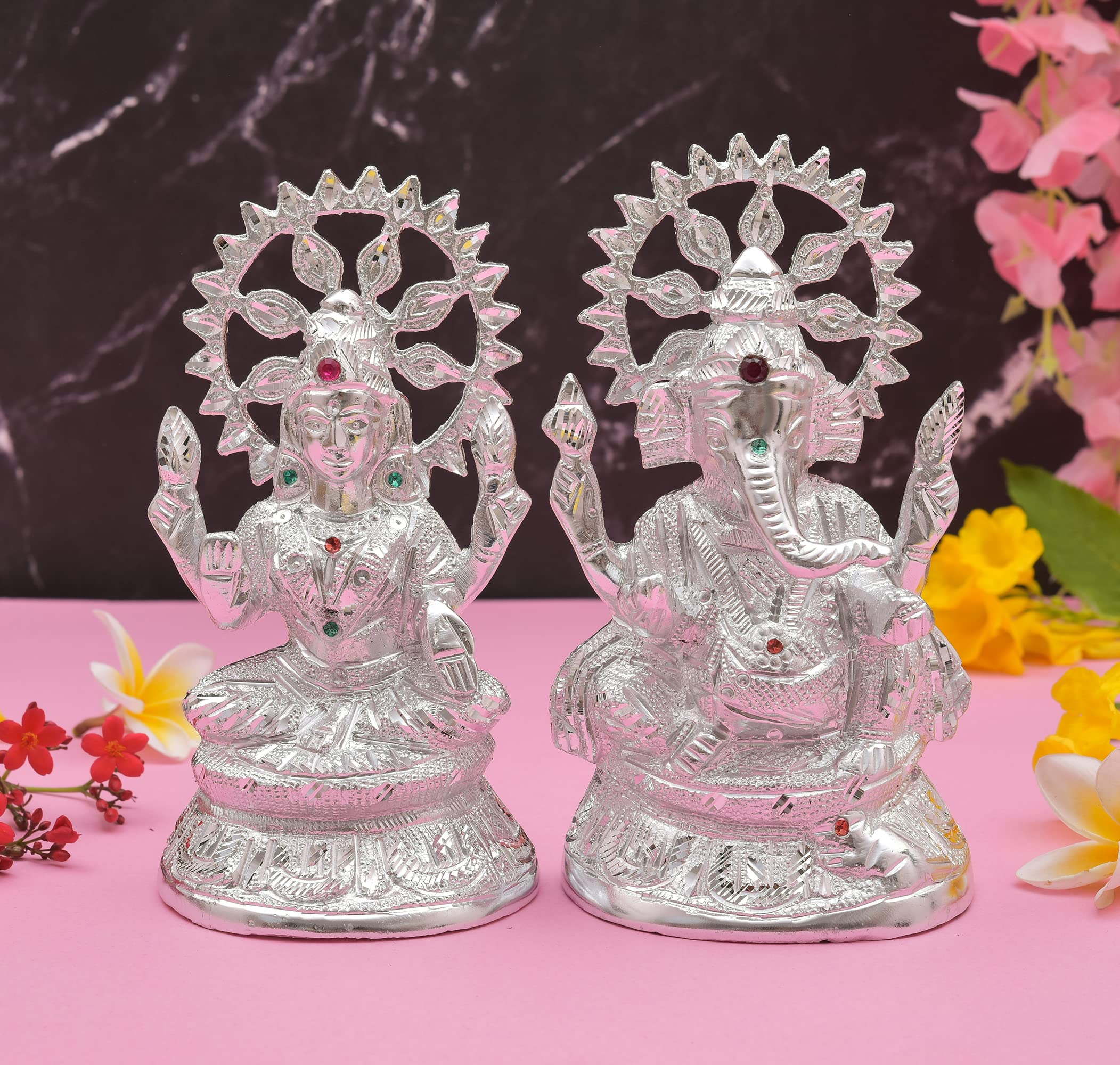 CHURU SILVERWARE Laxmi Ganesha Idol Laxmi Ganesh ji murti for Home Temple & Decor Laxmi Ganesha murti in Metal