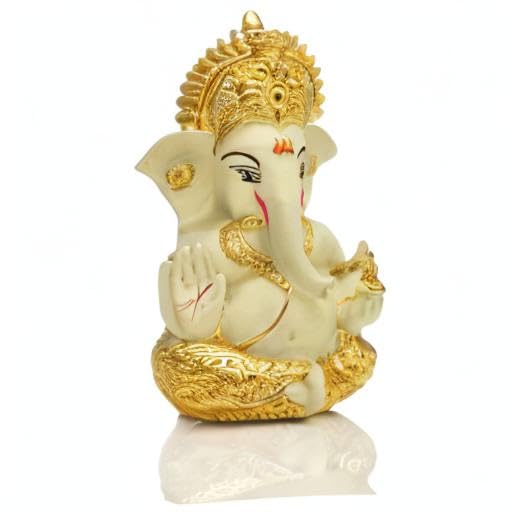HomeHomeSpiritualIdolsCollectible India Ganesha for Car Dashboard Ganesh Statue Murti Gold Plated Terracotta Lord Ganpati Diwali Gifts Home Decor Figurine (Size: 3.5 x 2 inches)