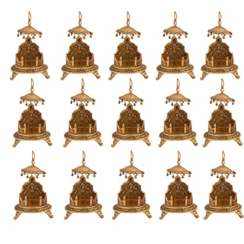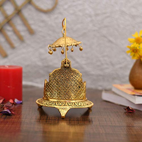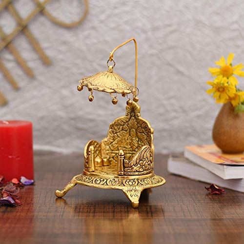 This chowki looks divine as a decorative showpiece for home and office. It can be a nice gift to your dear ones. Singhasan is very auspicious to placing god idols Bring a shiny and beautifully crafted auspicious shingasan made up of metal Material also an ideal gift for your loved ones. Lord idols will brighten up any corner of your home/office on this charming shingasan and will bring holy blessings into your home offices. Size: Height 8 Inches x Width 5 Inches x Depth 5 Inches | Weight: 320g | Material: Metal.
