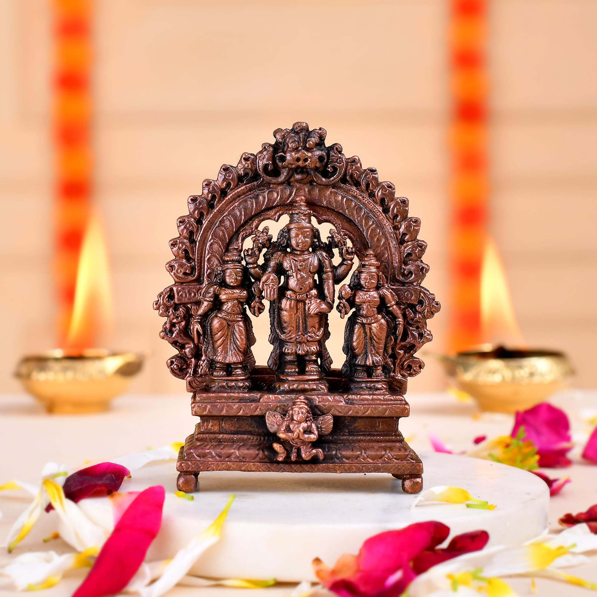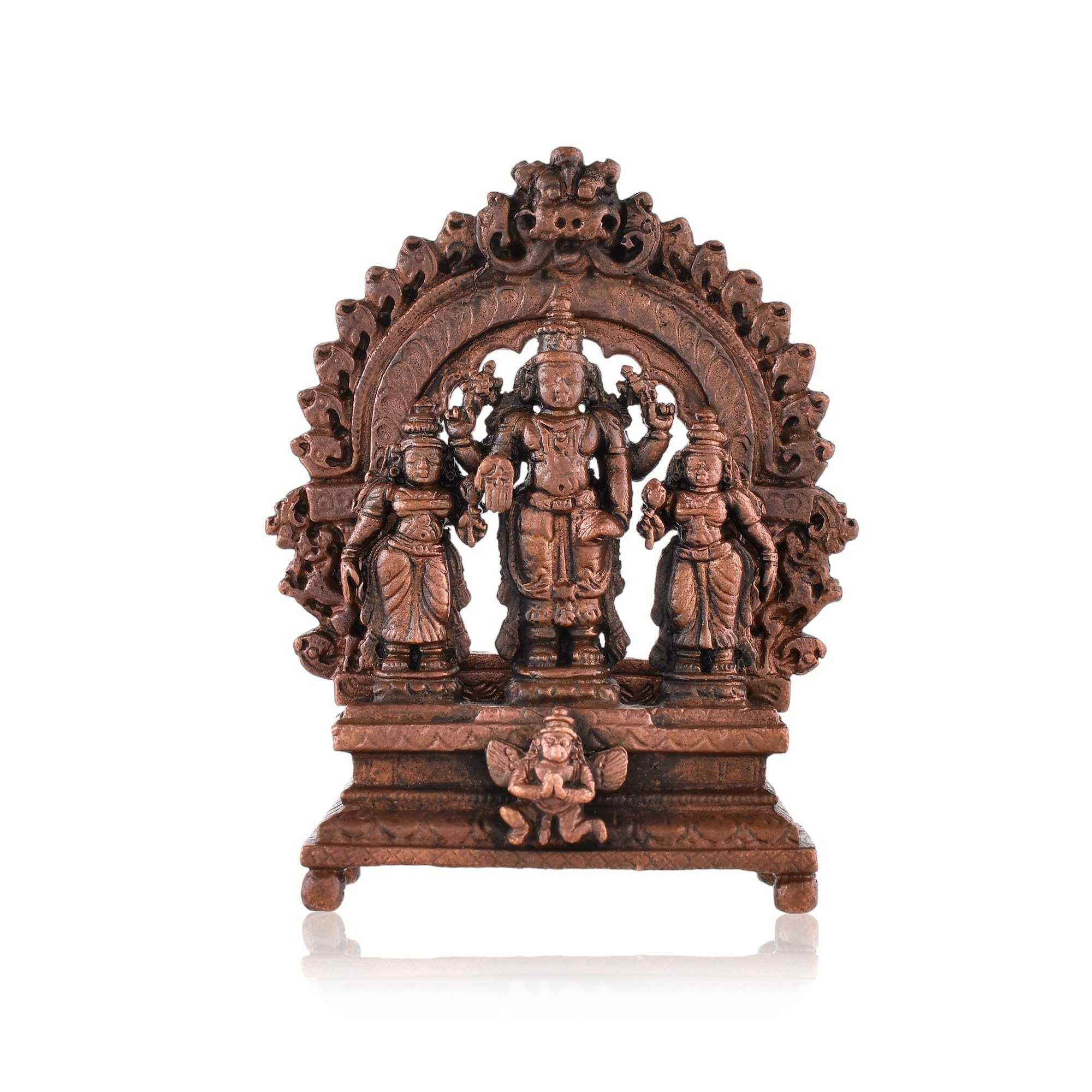 Experience the ethereal presence of Vishnu idol with our meticulously crafted Vishnu Idol Statue. This exquisite statue captures the divine tranquility and timeless beauty of Vishnu Idol. Our Vishnu Murti in Standing position is meticulously handcrafted by skilled artisans using premium-quality copper materials. It is crafted from durable and high-quality copper ensuring its longevity and adding a touch of elegance to any space. The standing position of Vishnu Idol represents his role as the cosmic preserver and the embodiment of harmony and balance. Owning this idol statue not only adds aesthetic beauty to your space but also invites positive energies peace and blessings into your life.