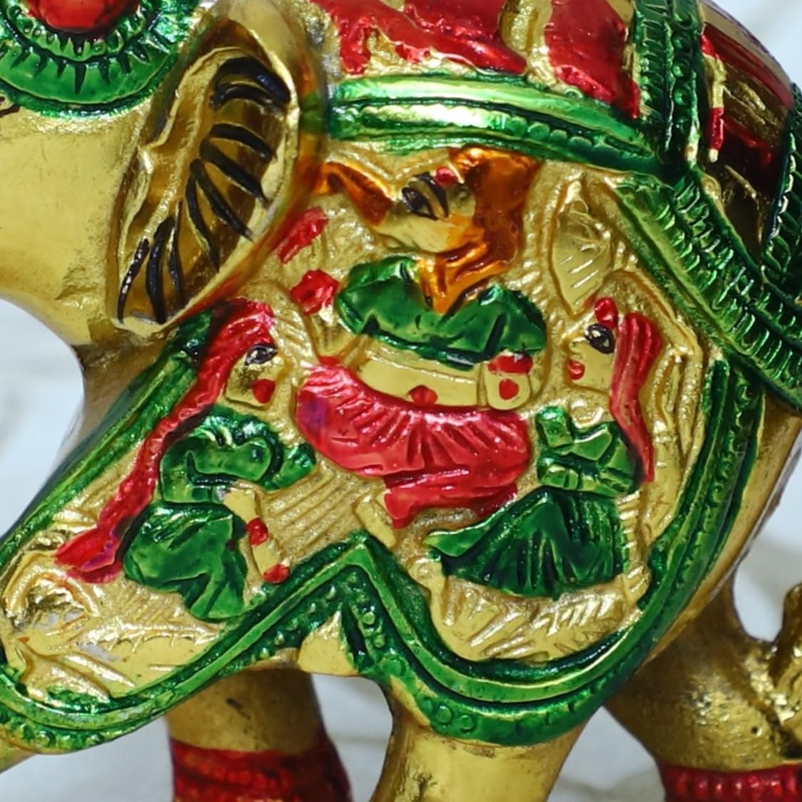 Metal Golden Elephant Set. Elephant Set is gold plated with antique finish so looks very beautiful and use for the purpose of worship and for home decorative. It's design to looks traditional stylish and inspiration from the day's of royal touch that is made in white-metal casting with silver antiques finish white metal to bring elegance to your home. This is hand made handcrafted items use it to religious worship of god&goddess. That is use and utility items & an ideals gift it to your dear once to pass on your best wishes that is an ideal gift for have House warming anniversaries birthday wedding gifts return gifts corporation gifts religious-gifts & Indian festivals. Our White Metal Gold Plated Showpieces is an impressive piece of art that is made from the finest-grade raw materials and intricately designed by our teams of adroit designers and craftsmen using high-end technologies.