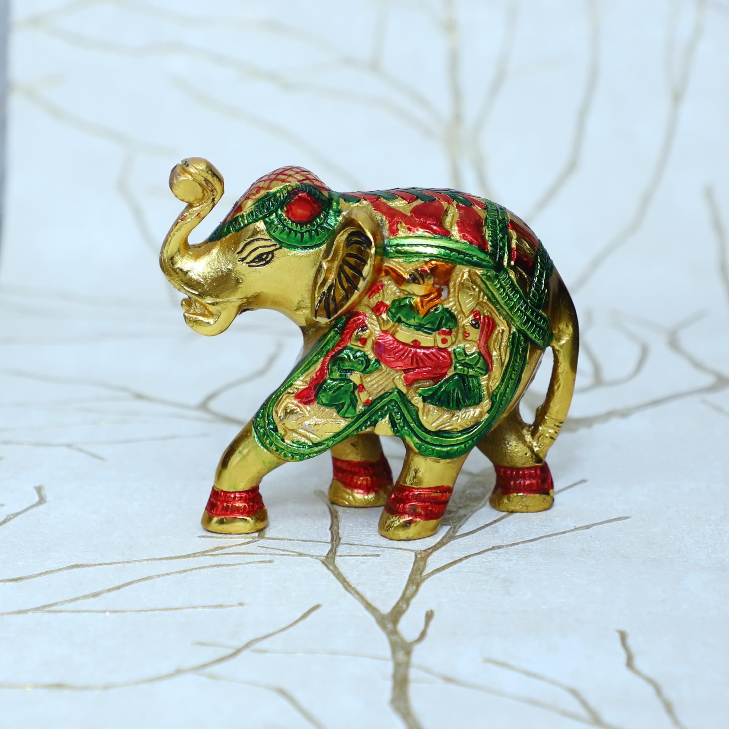 Metal Golden Elephant Set. Elephant Set is gold plated with antique finish so looks very beautiful and use for the purpose of worship and for home decorative. It's design to looks traditional stylish and inspiration from the day's of royal touch that is made in white-metal casting with silver antiques finish white metal to bring elegance to your home. This is hand made handcrafted items use it to religious worship of god&goddess. That is use and utility items & an ideals gift it to your dear once to pass on your best wishes that is an ideal gift for have House warming anniversaries birthday wedding gifts return gifts corporation gifts religious-gifts & Indian festivals. Our White Metal Gold Plated Showpieces is an impressive piece of art that is made from the finest-grade raw materials and intricately designed by our teams of adroit designers and craftsmen using high-end technologies.
