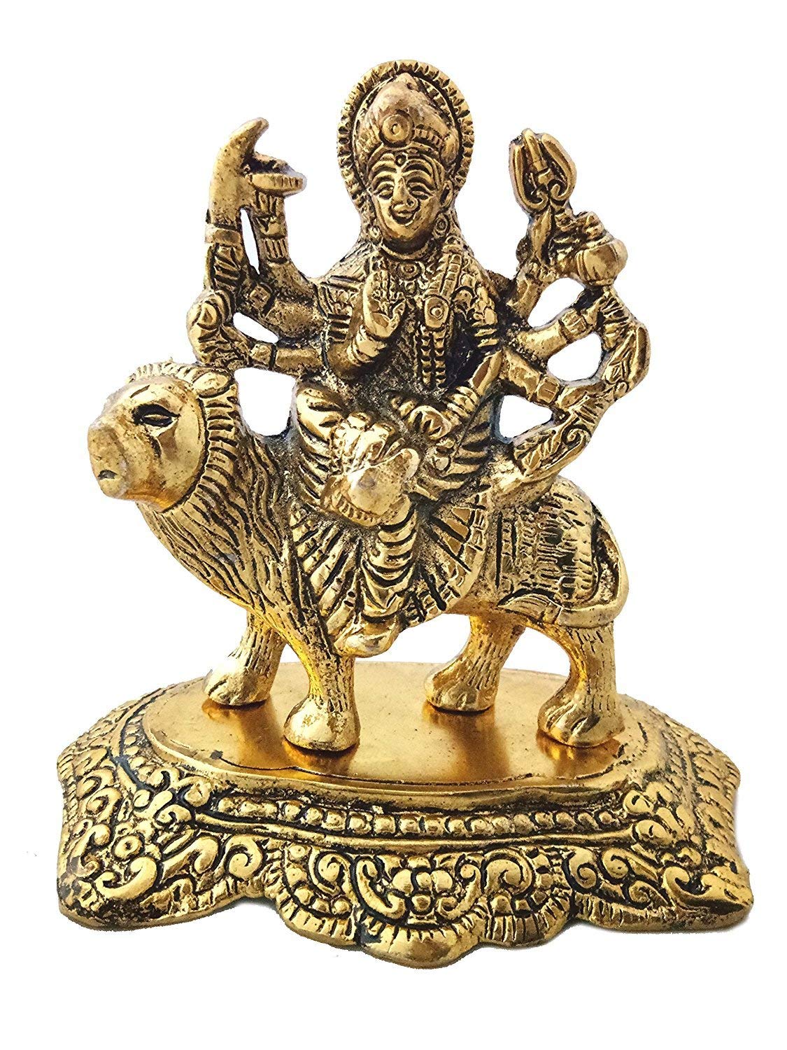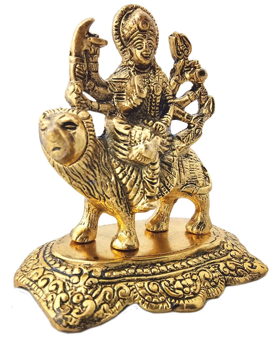 DHOKRA CRAFT Metal Crafts Handmade Antique Look Hindu Goddess Maa Durga Statue 13 X 8 X 14 cm. Multicolour.