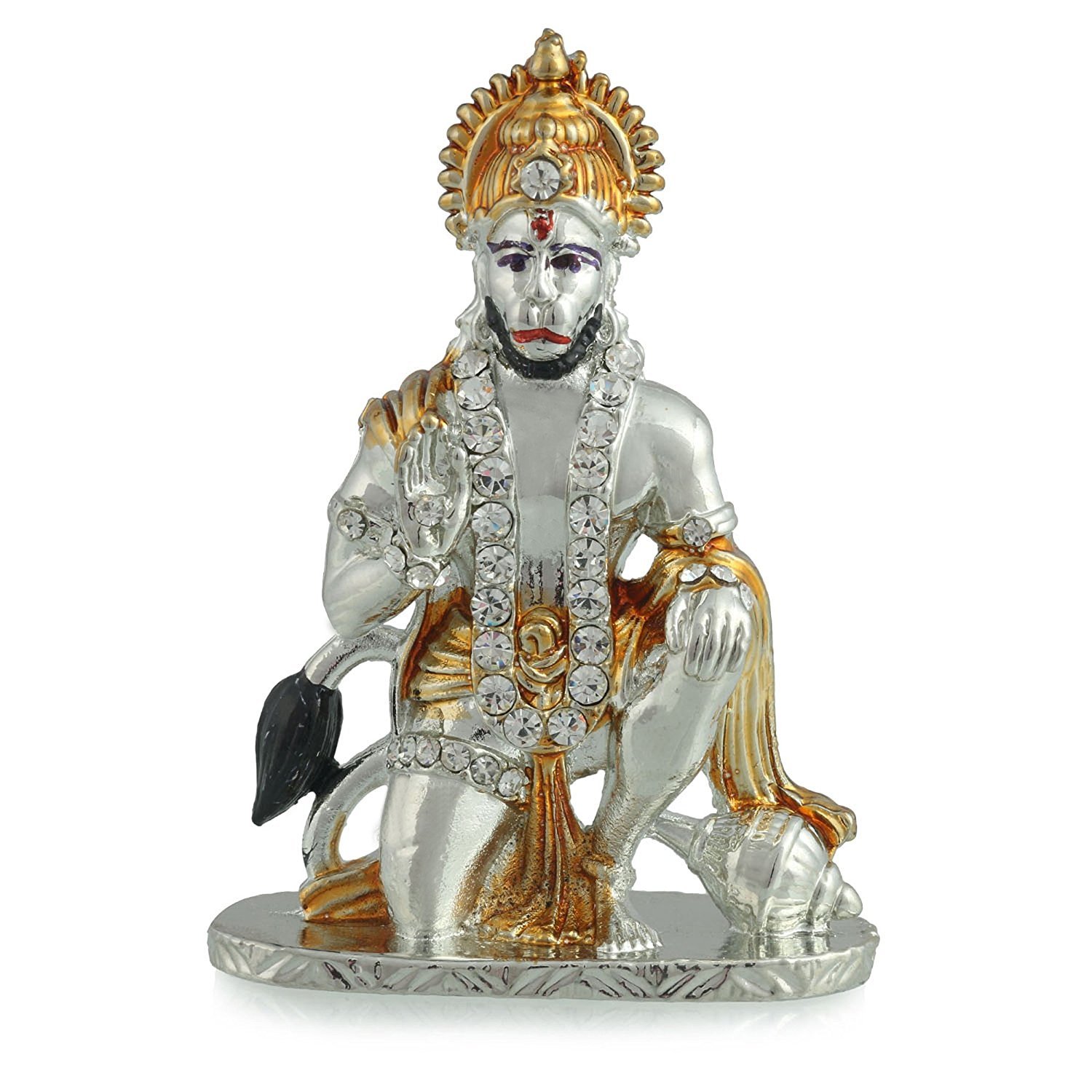 This Beautiful Hanuman statue by Divine Gifts is ideal for pooja or gifting. Hands of lord Hanumanji are carved in blessing posture This artefact of Lord Hanuman depicts the deity in a sitting posture. This figurine of lord Hanuman is a must have as it bears the quality and detailing of one of the most reputed online dealer Divine Gifts.Some Tips:- According to texts in Hanumath Prakaranam East facing Anjaneya grants Ishta Siddhi. South facing Karala Ugraveera Narasimha grants Abhista Siddhi. West facing Mahaveera Garuda grants Sakala Soubhagya. North facing Lakshmi Varaha grants Dhana Prapthi. Urdhva Mukha being Hayagriva grants Sarva Vidya Jaya Prapthi. The idol is suitable for worshipping as well as home decoration and is given a glossy finish.Hanuman ji is an ardent devotee of Lord Rama. He is the symbol of power energy strength and knowledge. And an epitome of true devotion and brahmcharya (bachelorhood).