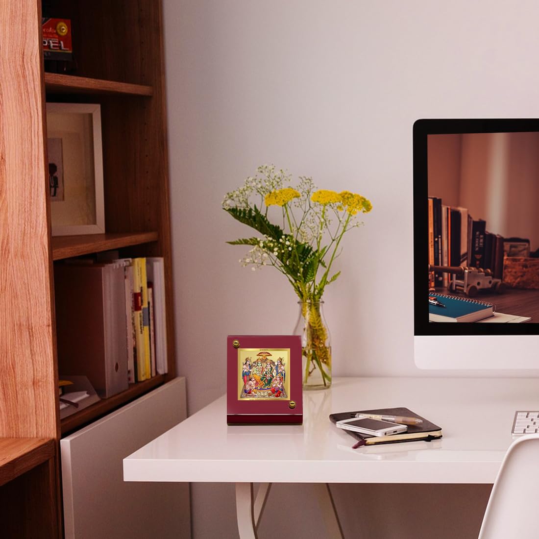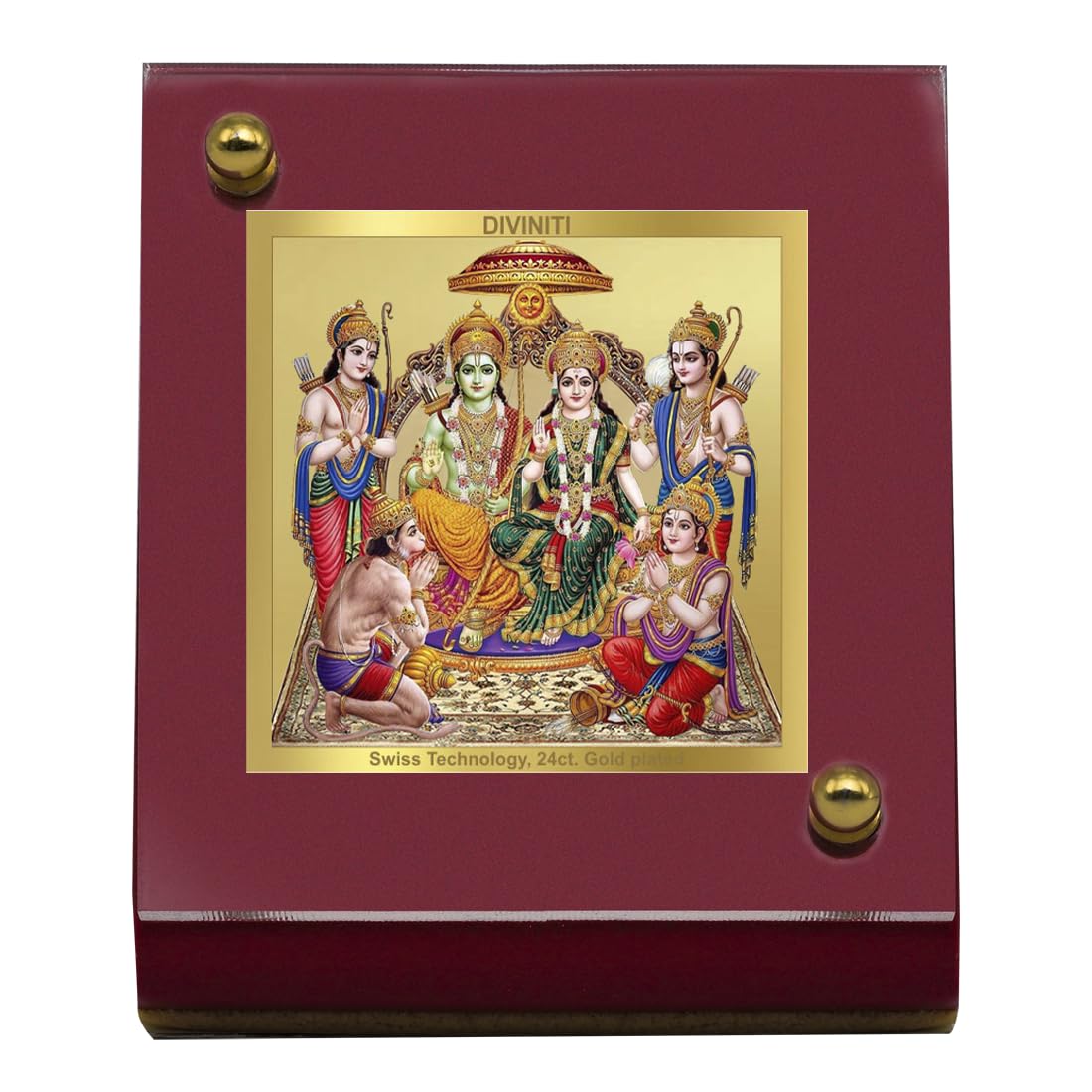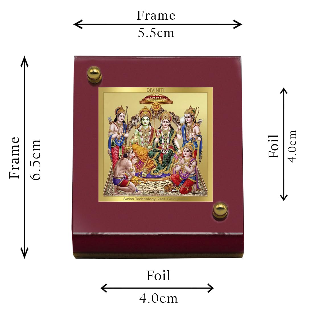 DIVINITI Ram Darbar 24K God Plated Photo Frame For Car Dashboard Table Decor Office|MDF 1B Wooden Frame And 24K Gold Plated Foil|Religious Frame Idol For Pooja Prayer Gifts (6.3x5.5 cm)
