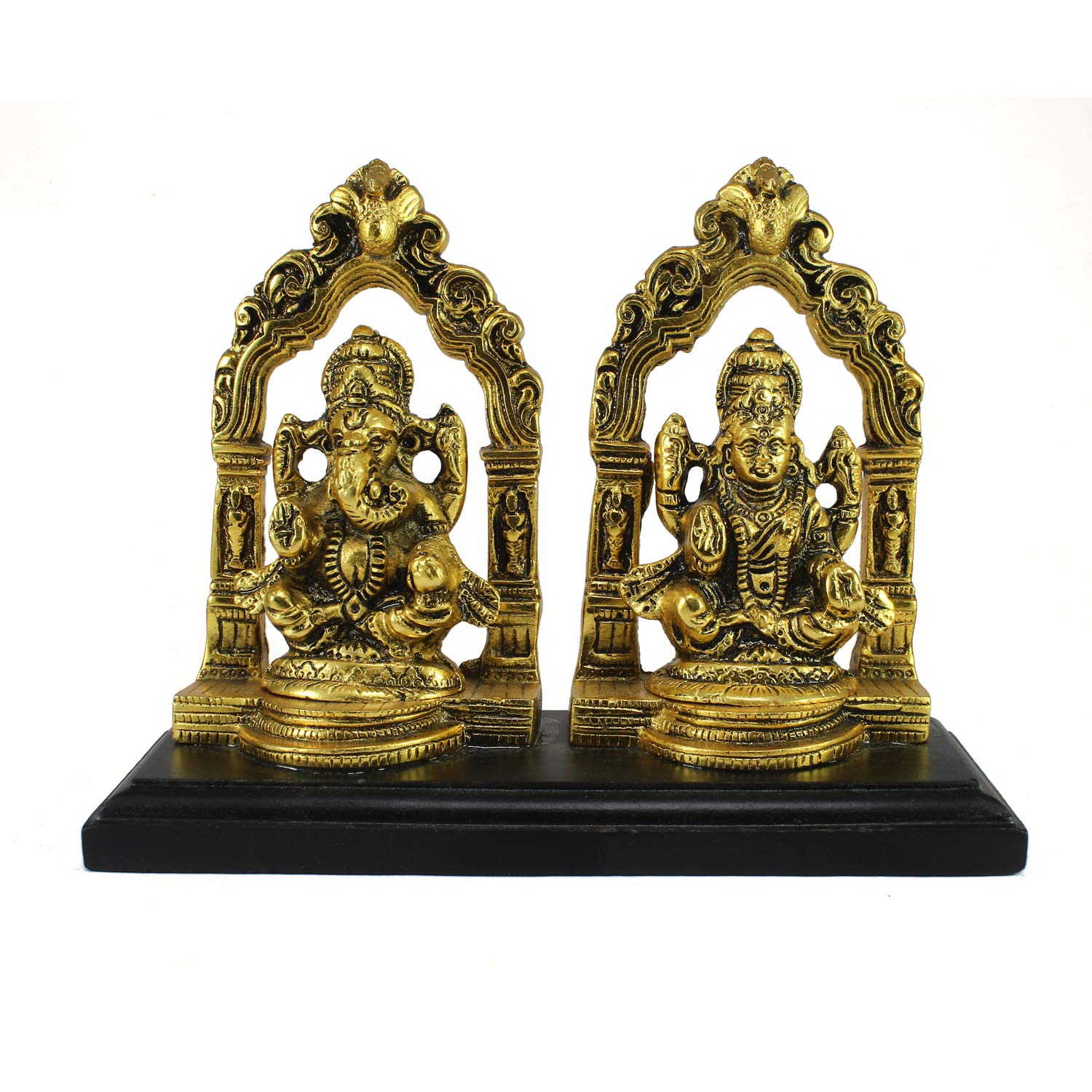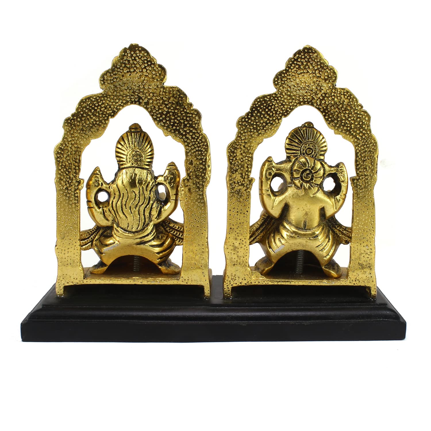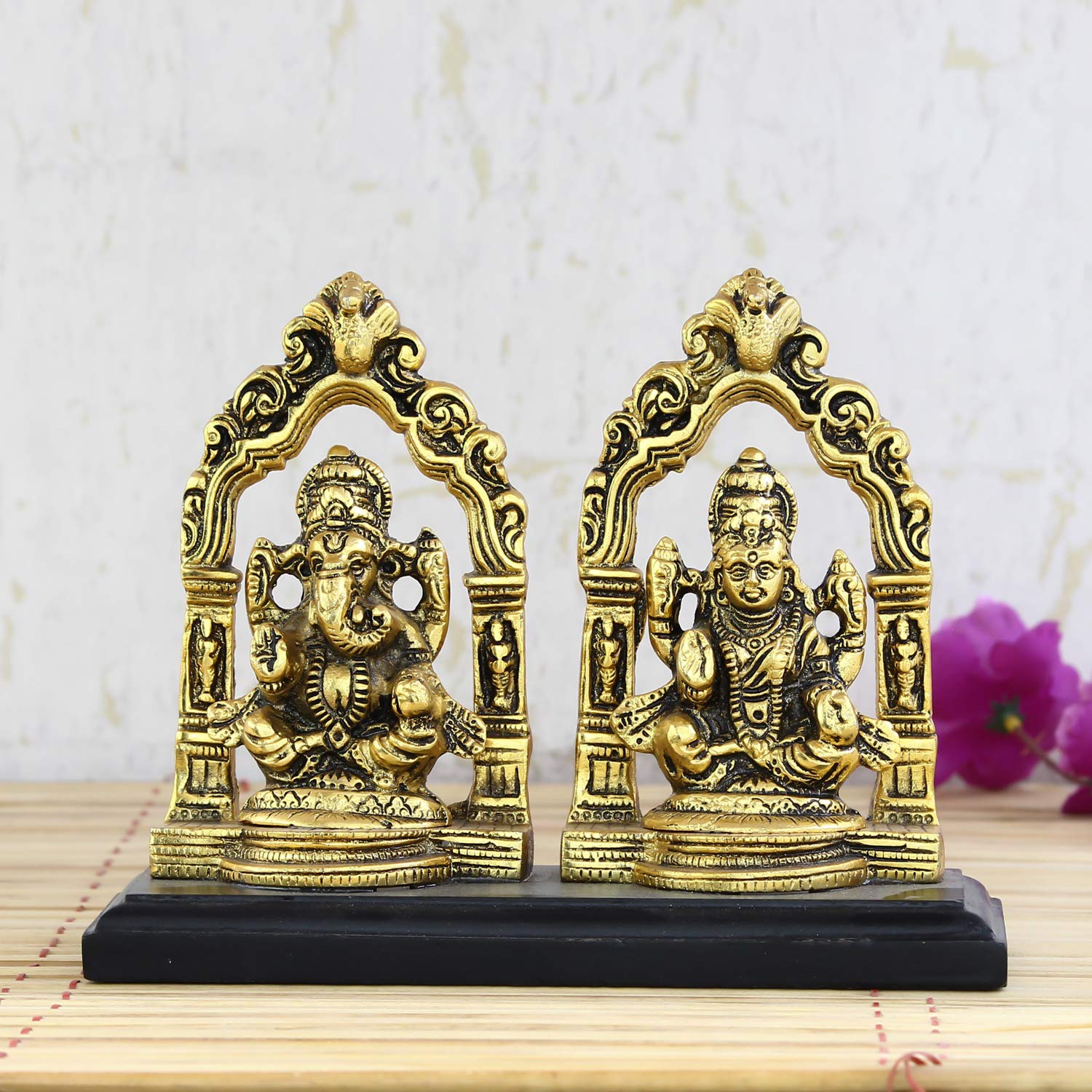 Enlighten your home with this auspicious statue of Laxmi and Ganesha made from golden metal which reflects the artistic brilliance and adds elegance to your decor. Style your home and office with this white metal statue; sure to be admired by your guests. It serves as a great gift especially around religious celebrations and festivities. This white metal handicraft has been made by skilled artisans from the house of eCraftIndia using various traditional techniques.