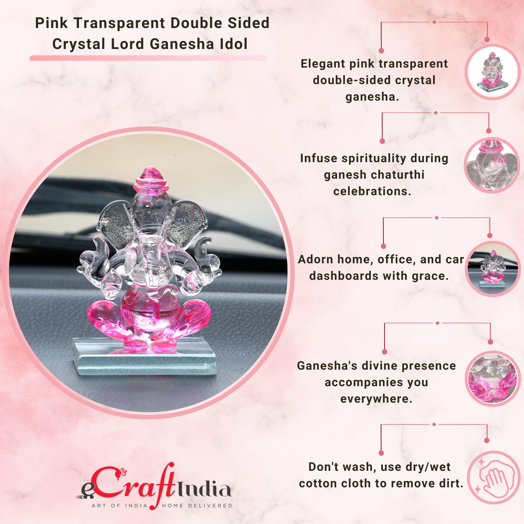 ECraftIndia Pink and Transparent Double Sided Crystal Car Ganesha Showpiece