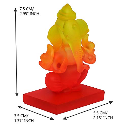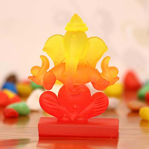 Package Content - One Yellow and Orange Double Sided Crystal Car Ganesha Showpiece